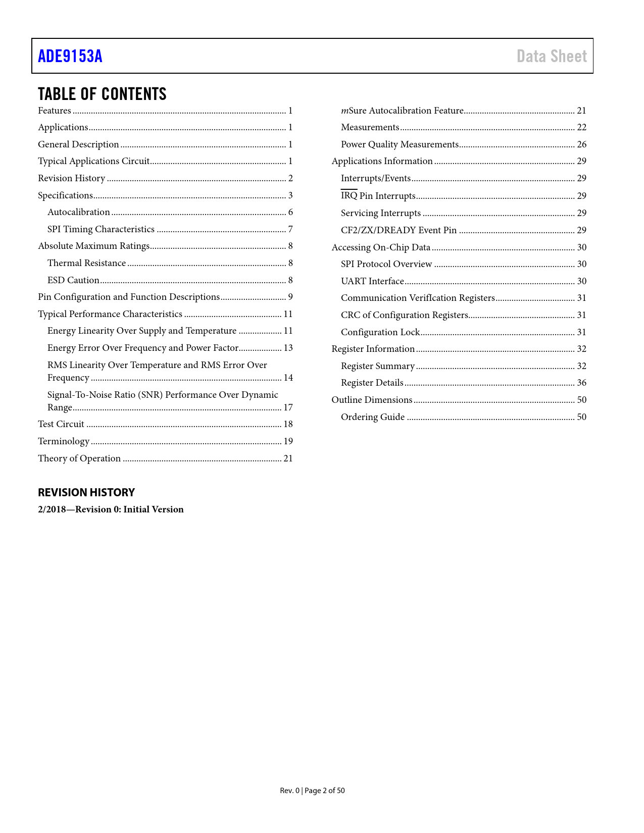 Pages / Page50 / 2 — ADE9153A. Data Sheet. TABLE OF CONTENTS. REVISION HISTORY. …