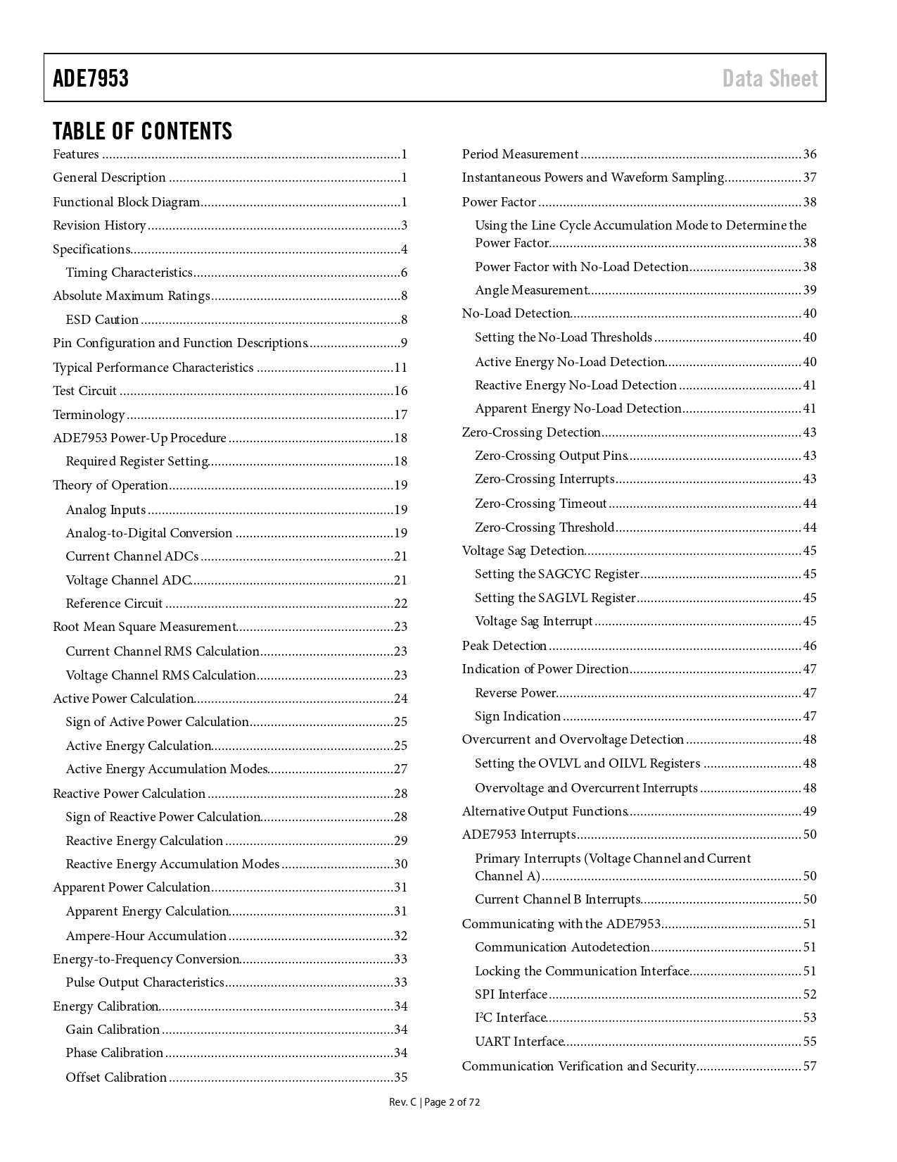 Pages / Page72 / 2 — ADE7953. Data Sheet. TABLE OF CONTENTS