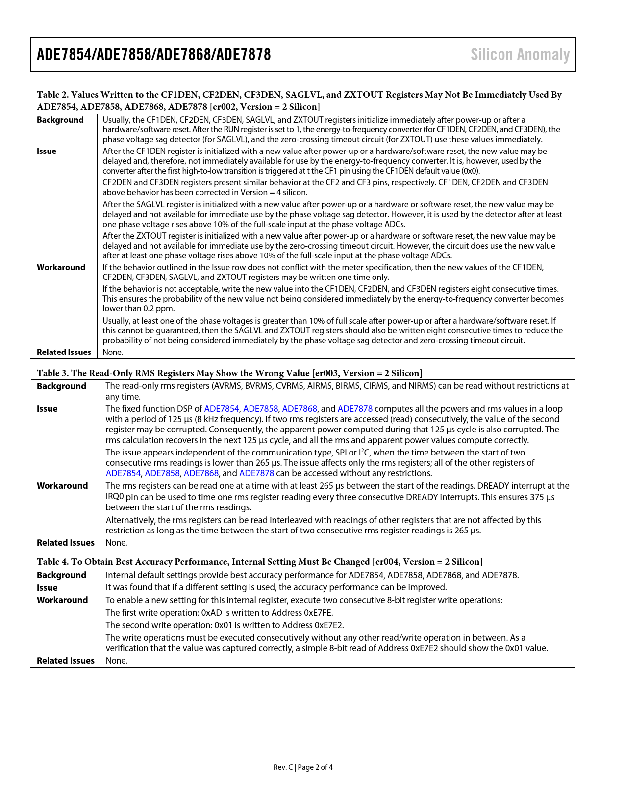 Pages / Page4 / 2 — ADE7854/ADE7858/ADE7868/ADE7878. Silicon Anomaly