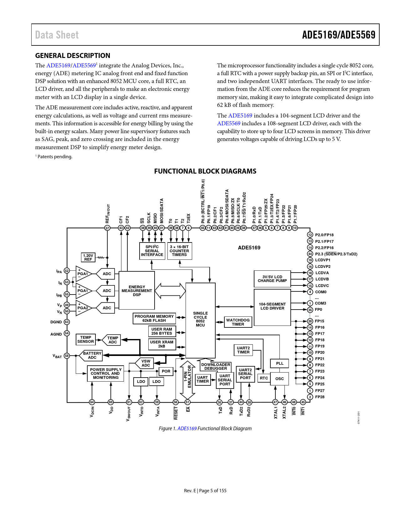 Pages / Page155 / 5 — Data Sheet. ADE5169/ADE5569. GENERAL DESCRIPTION. FUNCTIONAL BLOCK …