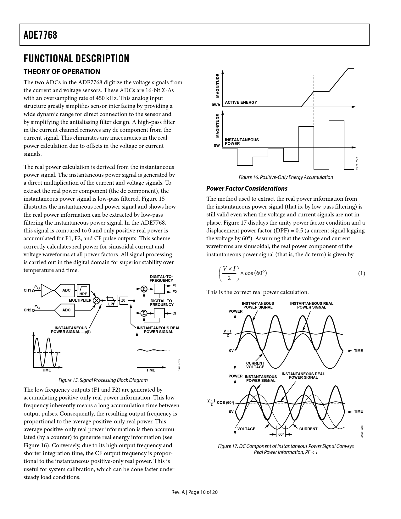 link to page 10 link to page 10 link to page 10 ADE7768FUNCTIONAL DESCRIPTION THEORY OF OPERATION The two ADCs in the ADE7768 digitize the voltage signals from the current and voltage sensors. These ADCs are 16-bit Σ-Δs with an oversampling rate of 450 kHz. This analog input MAGNITUDEACTIVE ENERGY structure greatly simplifies sensor interfacing by providing a 0Wh wide dynamic range for direct connection to the sensor and by simplifying the antialiasing filter design. A high-pass filter in the current channel removes any dc component from the current signal. This eliminates any inaccuracies in the real MAGNITUDEINSTANTANEOUS power calculation due to offsets in the voltage or current POWER0W signals. The real power calculation is derived from the instantaneous 05331-028 power signal. The instantaneous power signal is generated by Figure 16. Positive-Only Energy Accumulation a direct multiplication of the current and voltage signals. To extract the real power component (the dc component), the Power Factor Considerations instantaneous power signal is low-pass filtered. Figure 15 The method used to extract the real power information from illustrates the instantaneous real power signal and shows how the instantaneous power signal (that is, by low-pass filtering) is the real power information can be extracted by low-pass still valid even when the voltage and current signals are not in filtering the instantaneous power signal. In the ADE7768, phase. Figure 17 displays the unity power factor condition and a this signal is compared to 0 and only positive real power is displacement power factor (DPF) = 0.5 (a current signal lagging accumulated for F1, F2, and CF pulse outputs. This scheme the voltage by 60°). Assuming that the voltage and current correctly calculates real power for sinusoidal current and waveforms are sinusoidal, the real power component of the voltage waveforms at all power factors. All signal processing instantaneous power signal (that is, the dc term) is given by is carried out in the digital domain for superior stability over temperature and time. ⎛ V × I ⎞ ⎜ ⎟ × cos ( ° 60 ) (1) DIGITAL-TO- ⎝ 2 ⎠ FREQUENCYF1CH1ADCF2 This is the correct real power calculation. HPFMULTIPLIER ≥ 0DIGITAL-TO-LPFFREQUENCYINSTANTANEOUSINSTANTANEOUS REALPOWER SIGNALPOWER SIGNALCH2ADCPOWERCFINSTANTANEOUSINSTANTANEOUS REALPOWER SIGNAL – p(t)POWER SIGNALV × I20VTIMECURRENT VOLTAGETIMETIME 05331-005 INSTANTANEOUS REALPOWER INSTANTANEOUSPOWER SIGNAL Figure 15. Signal Processing Block Diagram POWER SIGNAL The low frequency outputs (F1 and F2) are generated by accumulating positive-only real power information. This low V × I COS (60 ° ) frequency inherently means a long accumulation time between 2 output pulses. Consequently, the resulting output frequency is 0VTIME proportional to the average positive-only real power. This average positive-only real power information is then accumu- VOLTAGECURRENT60 ° lated (by a counter) to generate real energy information (see 05331-006 Figure 16). Conversely, due to its high output frequency and Figure 17. DC Component of Instantaneous Power Signal Conveys shorter integration time, the CF output frequency is propor- Real Power Information, PF < 1 tional to the instantaneous positive-only real power. This is useful for system calibration, which can be done faster under steady load conditions. Rev. A | Page 10 of 20 Document Outline FEATURES GENERAL DESCRIPTION FUNCTIONAL BLOCK DIAGRAM SPECIFICATIONS TIMING CHARACTERISTICS ABSOLUTE MAXIMUM RATINGS ESD CAUTION TERMINOLOGY PIN CONFIGURATION AND FUNCTION DESCRIPTIONS TYPICAL PERFORMANCE CHARACTERISTICS FUNCTIONAL DESCRIPTION THEORY OF OPERATION Power Factor Considerations Nonsinusoidal Voltage and Current ANALOG INPUTS Channel V1 (Current Channel) Channel V2 (Voltage Channel) Typical Connection Diagrams POWER SUPPLY MONITOR HPF and Offset Effects Digital-to-Frequency Conversion Connecting to a Microcontroller for Energy Measurement Power Measurement Considerations INTERNAL OSCILLATOR (OSC) TRANSFER FUNCTION Frequency Outputs F1 and F2 Example Frequency Output CF SELECTING A FREQUENCY FOR AN ENERGY METER APPLICATION Frequency Outputs NO-LOAD THRESHOLD NEGATIVE POWER INFORMATION EVALUATION BOARD AND REFERENCE DESIGN BOARD OUTLINE DIMENSIONS ORDERING GUIDE