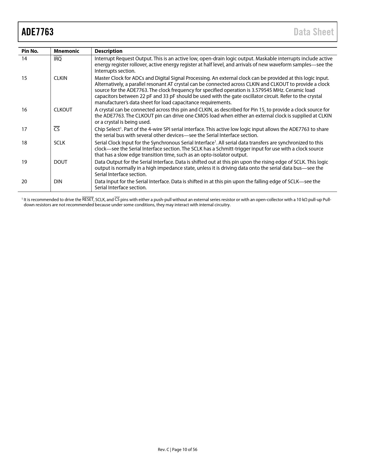 Pages / Page56 / 10 — ADE7763. Data Sheet. Pin No. Mnemonic. Description