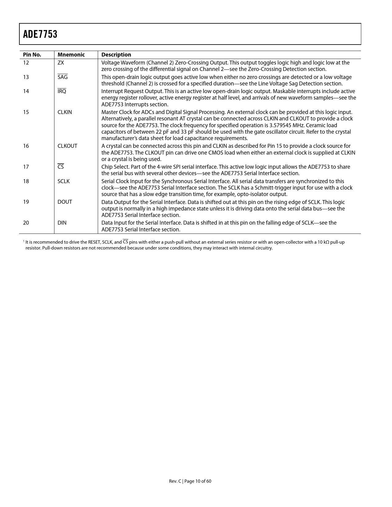 Pages / Page60 / 10 — ADE7753. Pin No. Mnemonic. Description