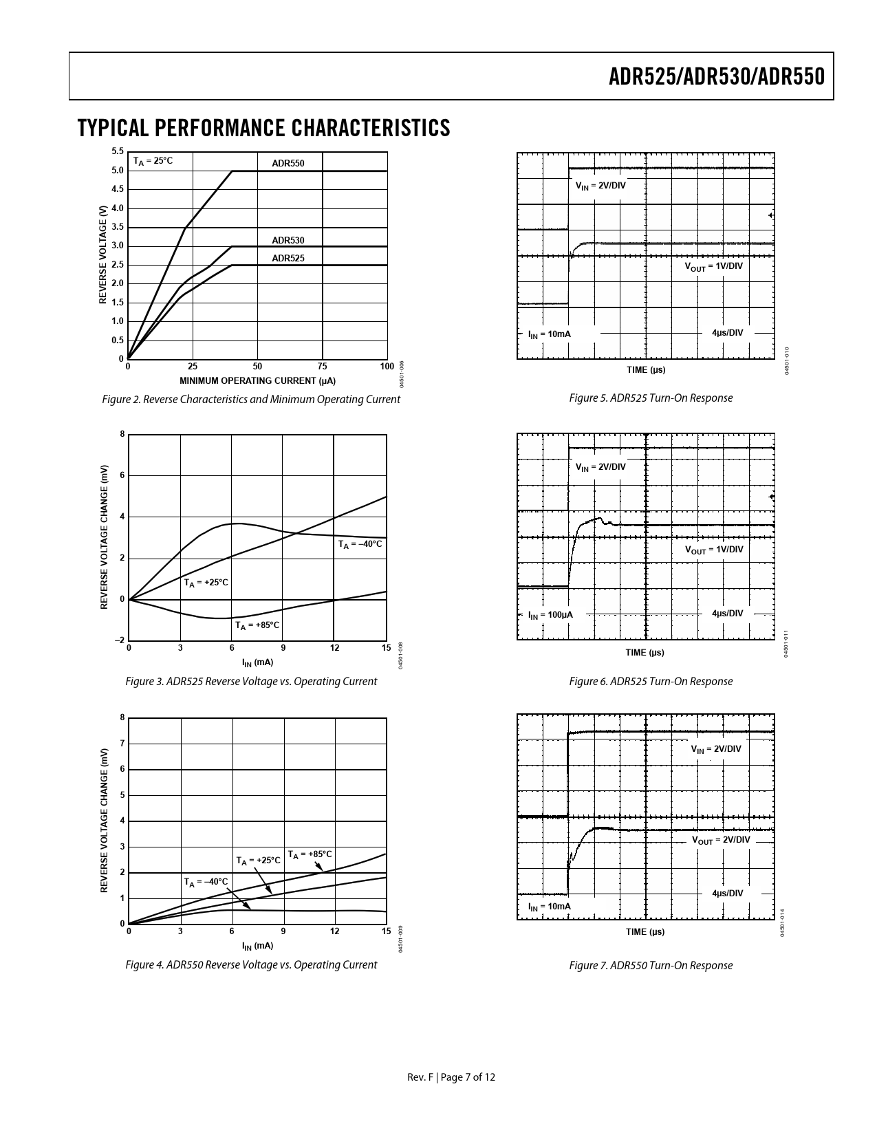 501 04 Figure 2. Reverse Characteristics and Minimum Operating Current Figure 5. ADR525 Turn-On Response