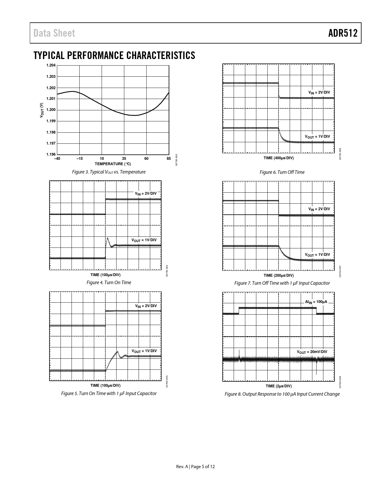 Data Sheet. ADR512. TYPICAL PERFORMANCE CHARACTERISTICS. 1.204. 1.203. 1.202. VIN = 2V/DIV. 1.201. (V). 1.200. UT OV. 1.199. 1.198. VOUT = 1V/DIV