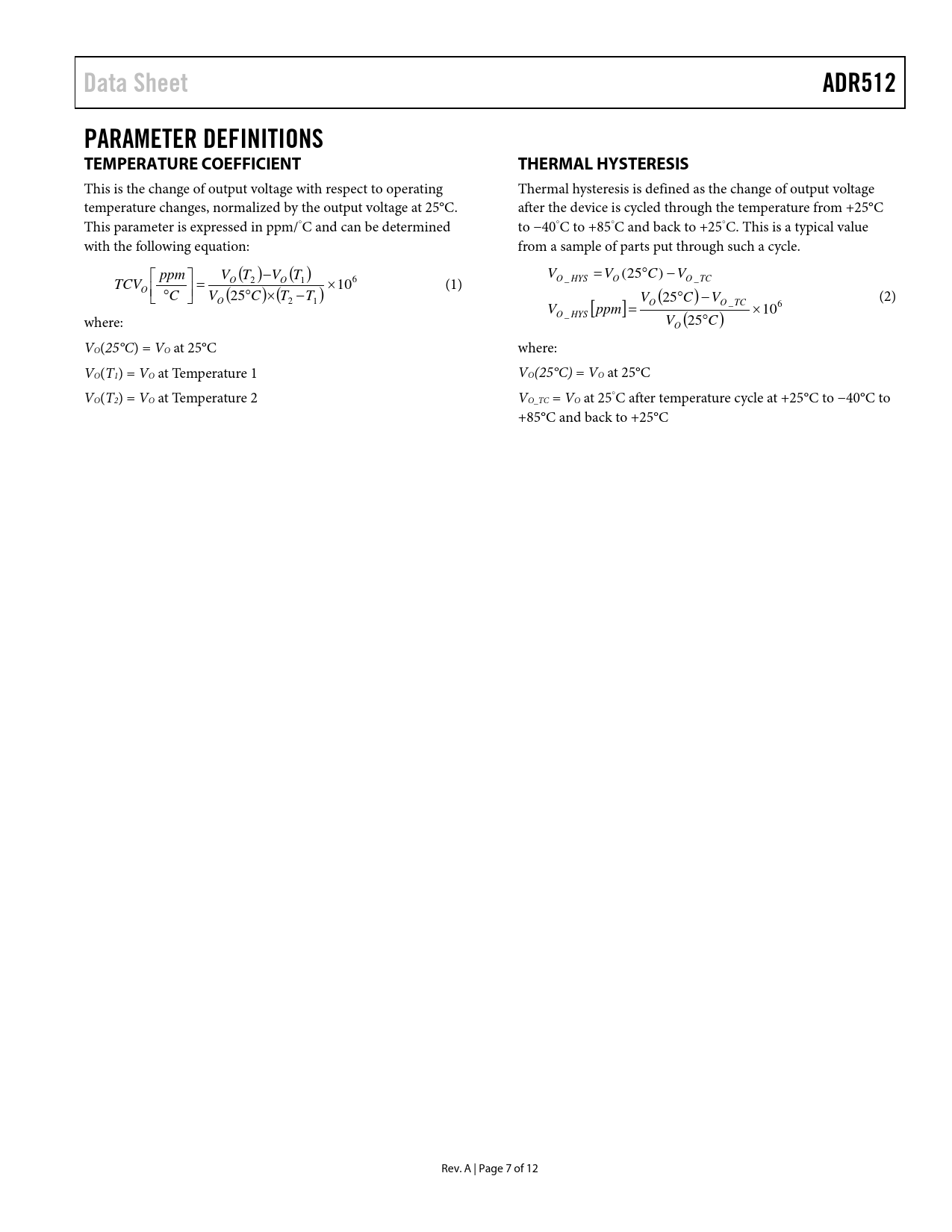 Pages / Page12 / 7 — Data Sheet. ADR512. PARAMETER DEFINITIONS TEMPERATURE COEFFICIENT. …