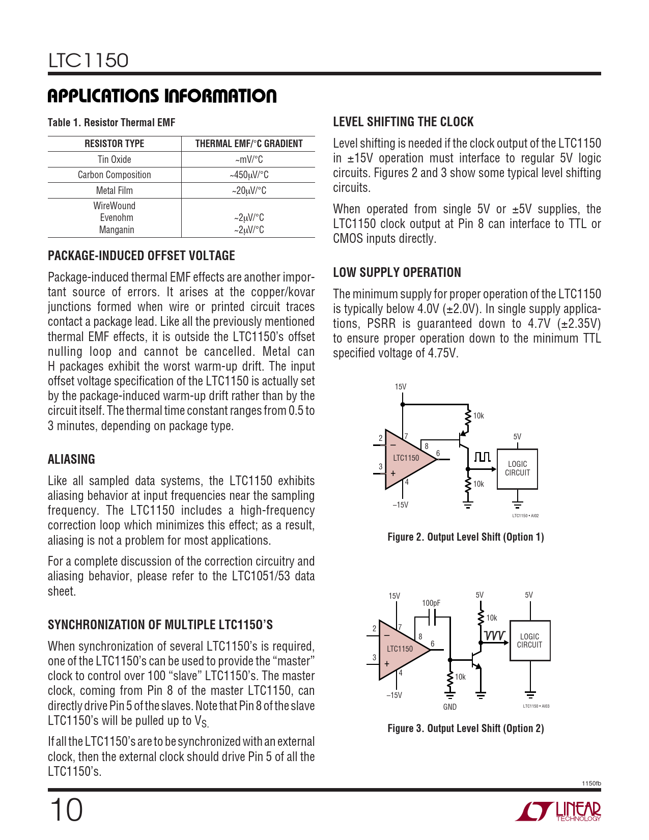 U U W U APPLICATIO S I FOR ATIO Table 1. Resistor Thermal EMF LEVEL SHIFTING THE CLOCK RESISTOR TYPE THERMAL EMF/