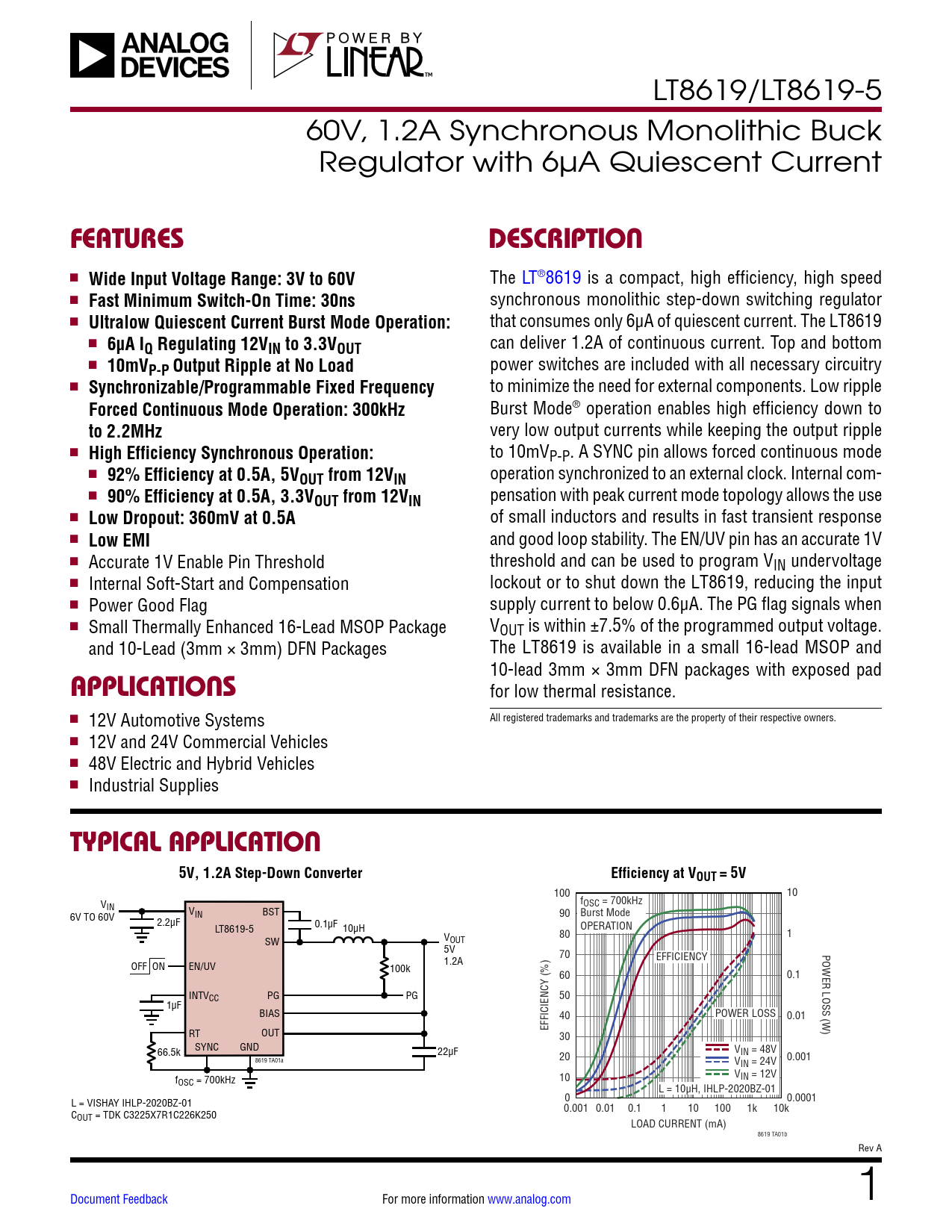 Datasheet LT8619, LT8619-5 (Analog Devices)