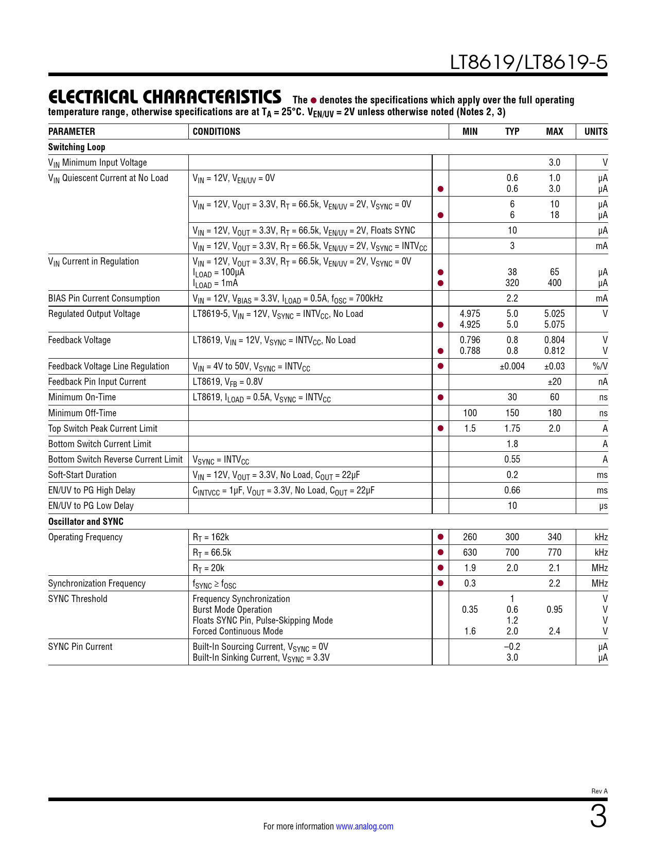 Datasheet LT8619, LT8619-5 (Analog Devices) - 3