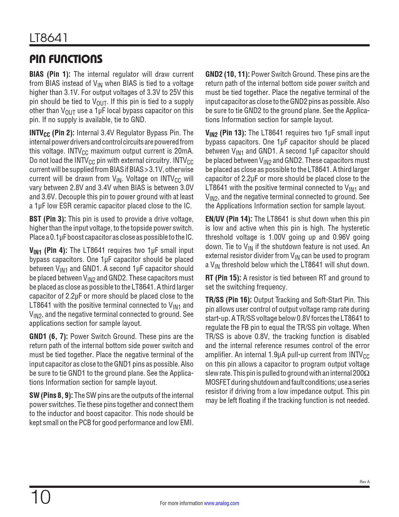 Pages / Page26 / 10 — PIN FUNCTIONS BIAS (Pin 1):. GND2 (10, 11):. INTVCC (Pin 2):. VIN2 (Pin …