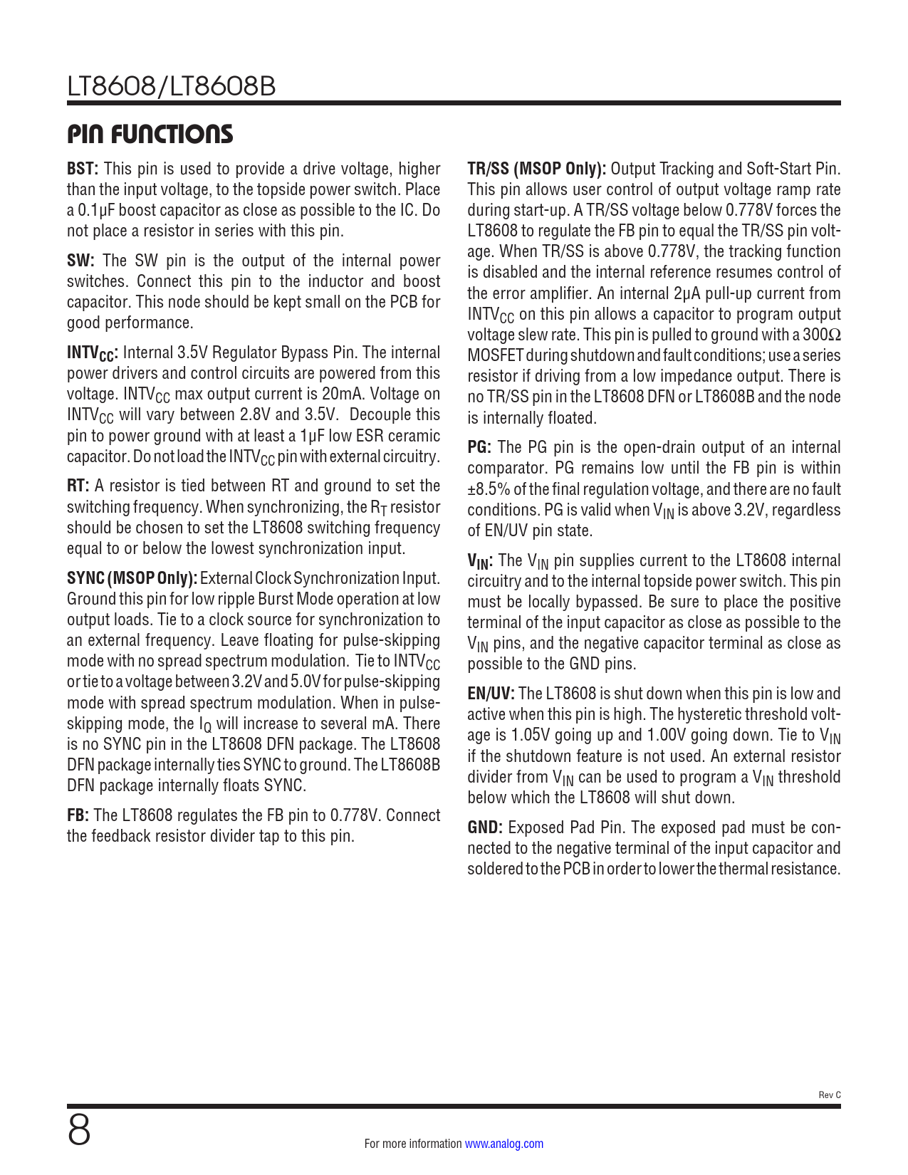 Pages / Page24 / 8 — PIN FUNCTIONS BST:. TR/SS (MSOP Only):. SW:. INTVCC:. PG:. RT:. VIN:. …