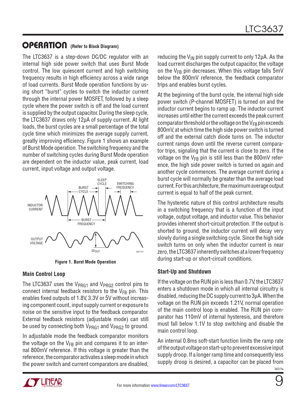 OPERATION (Refer to Block Diagram) Figure 1 Burst Mode Operation Start-Up and Shutdown Main Control Loop