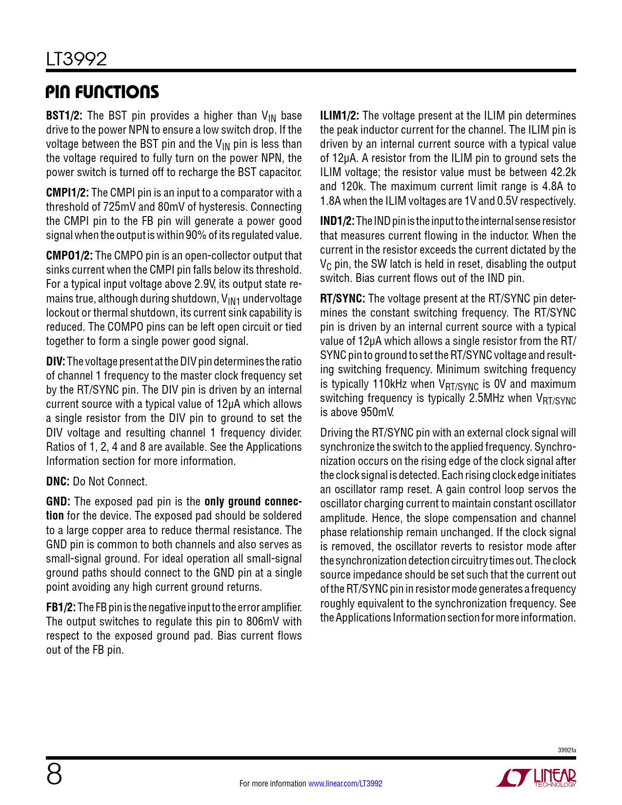 Datasheet LT3992 (Analog Devices) - 8