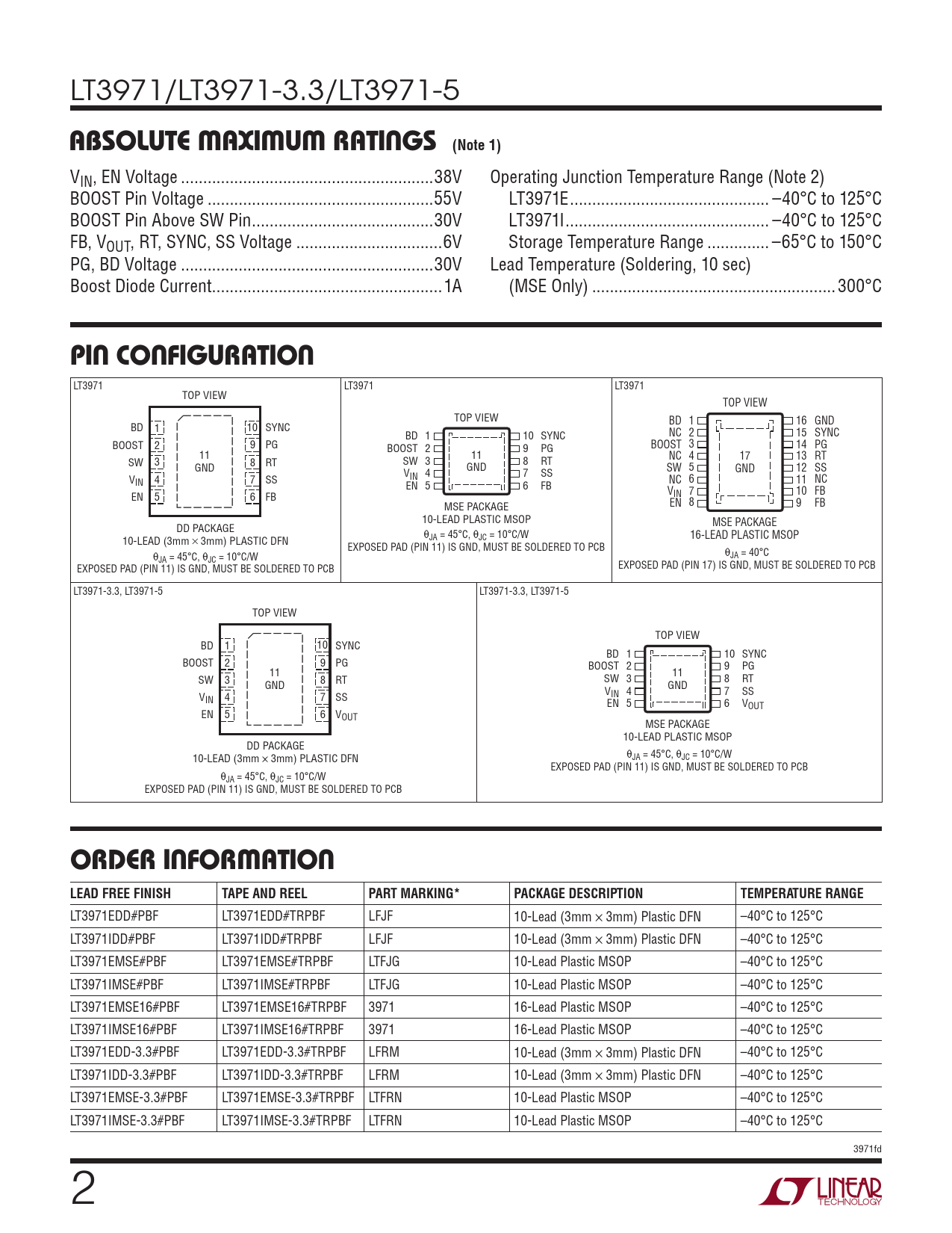 Datasheet LT3971, LT3971-3.3, LT3971-5 (Analog Devices) - 2