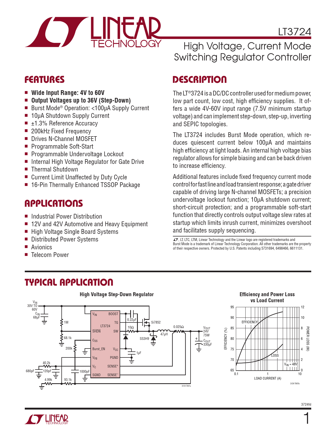 LT3724 High Voltage, Current Mode Switching Regulator Controller