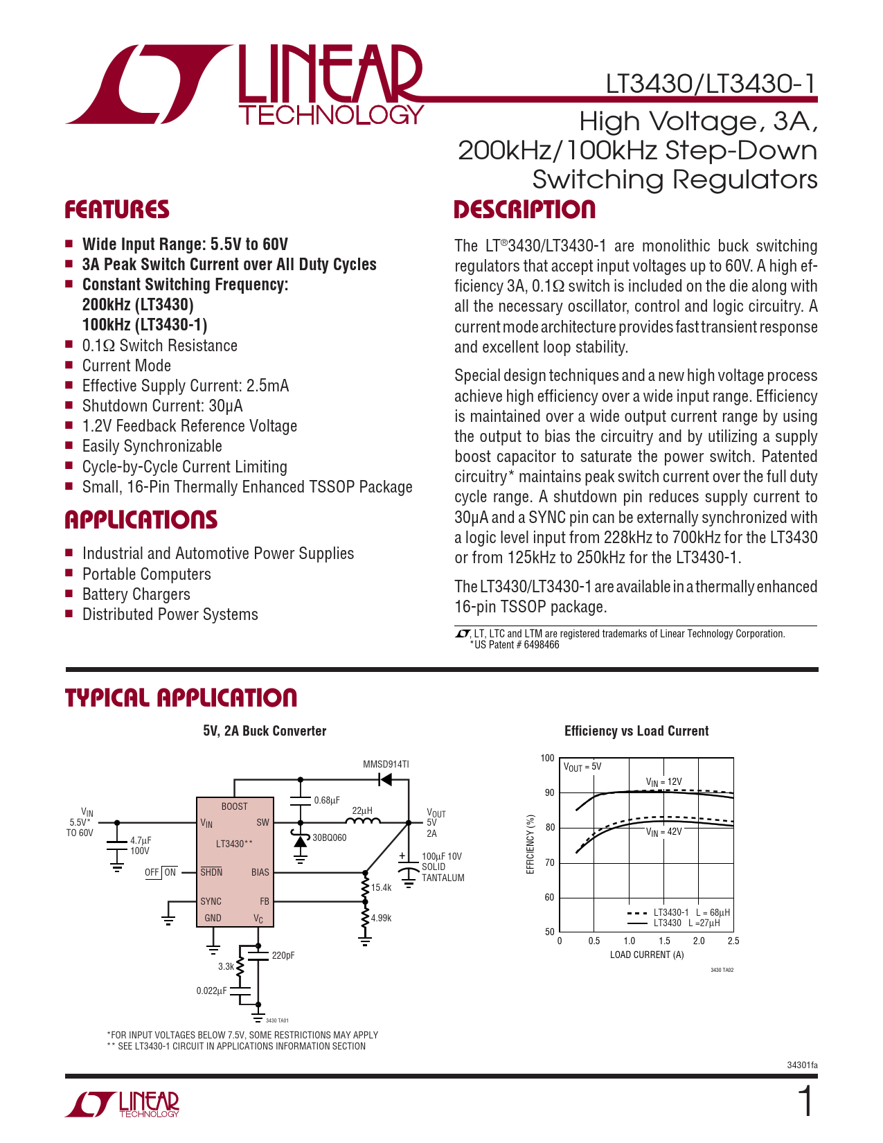 Datasheet LT3430, LT3430-1 (Analog Devices)