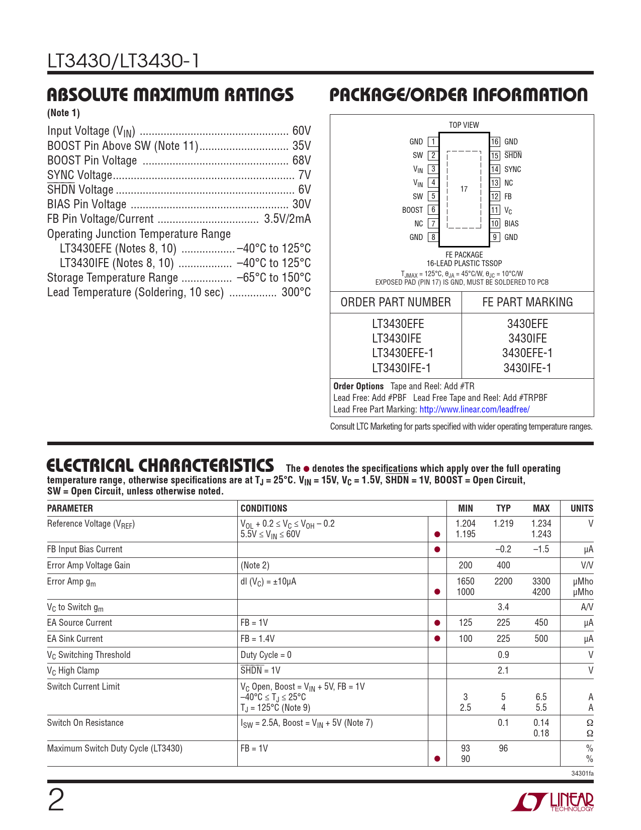 Datasheet LT3430, LT3430-1 (Analog Devices) - 2