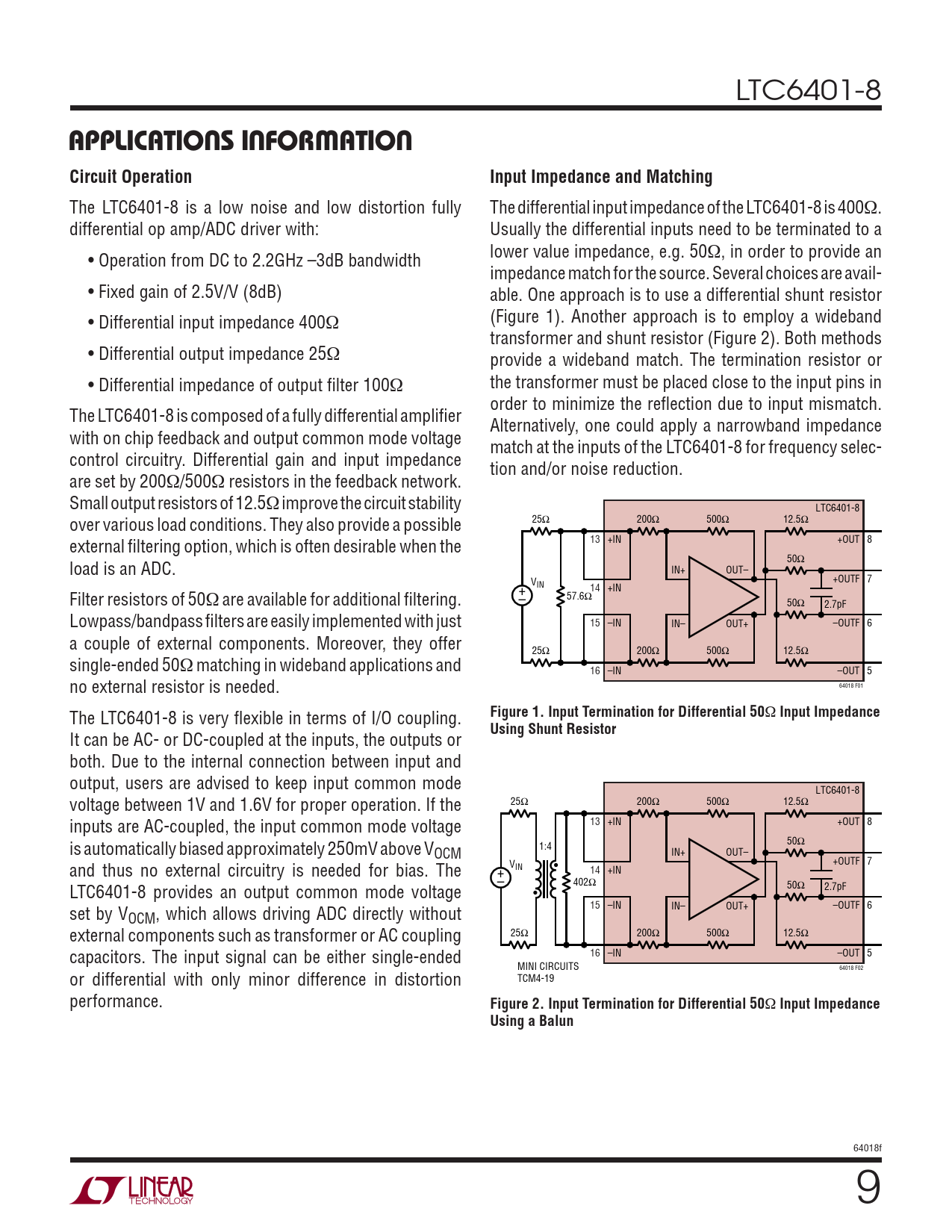 APPLICATIONS INFORMATION Circuit Operation Input Impedance and Matching