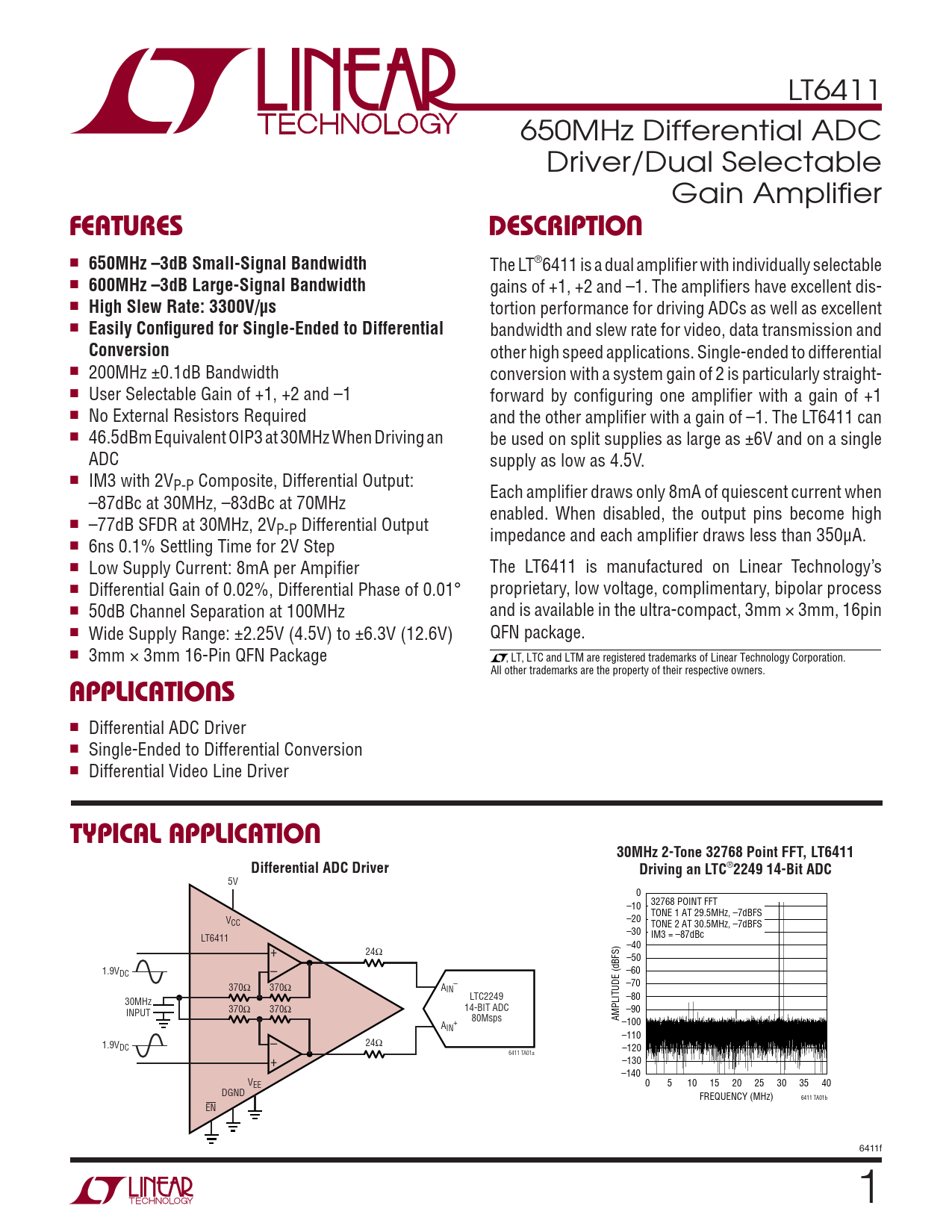 Datasheet LT6411 (Analog Devices)