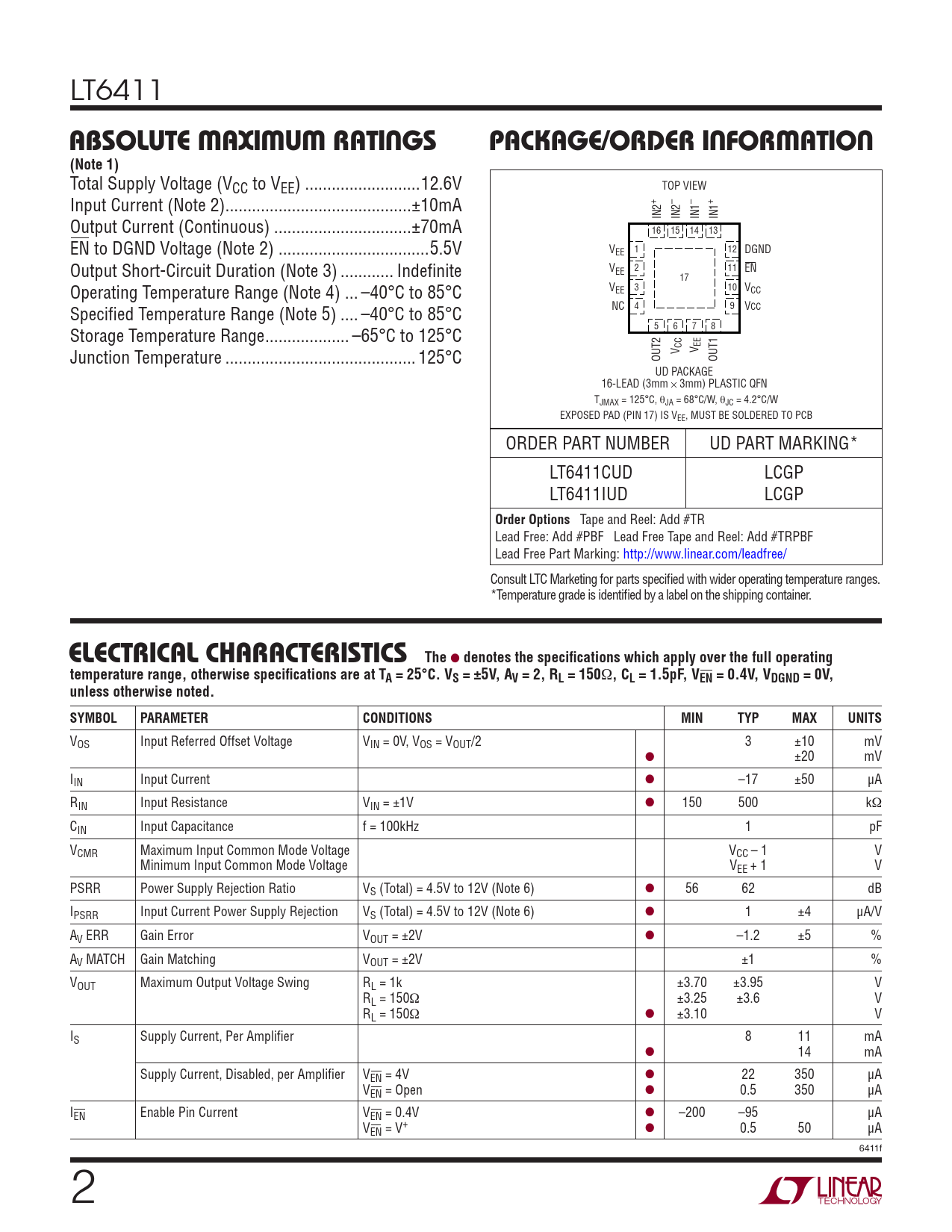 Datasheet LT6411 (Analog Devices) - 2