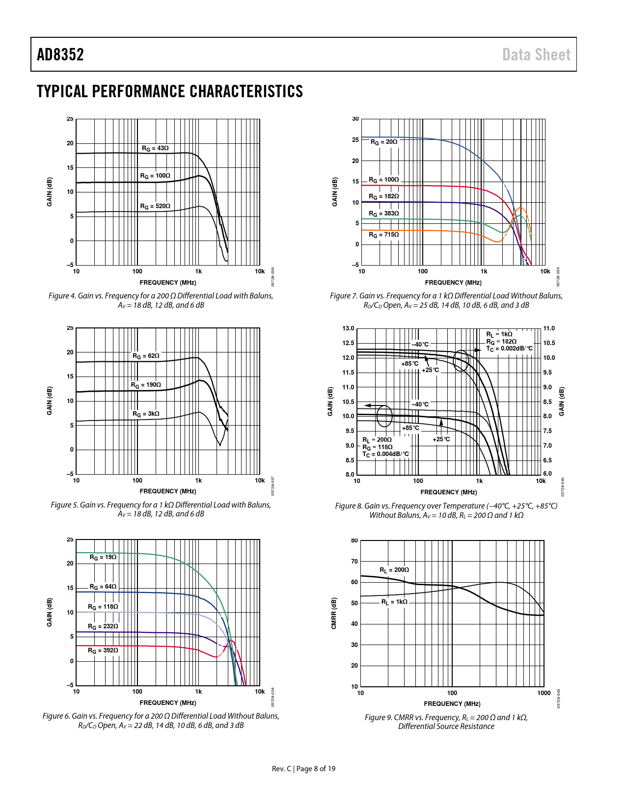 Pages / Page19 / 8 — AD8352. Data Sheet. TYPICAL PERFORMANCE CHARACTERISTICS. RG = 20Ω. RG = …