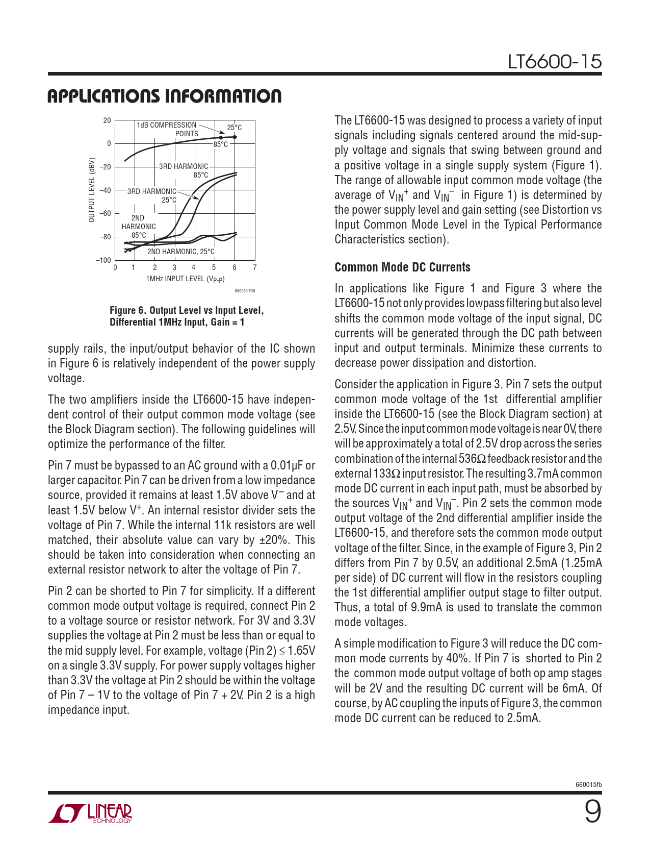 1MHz INPUT LEVEL (VP-P) 660015 F06 In applications like Figure 1 and Figure 3 where the LT6600-15 not only provides lowpass fi ltering but also level