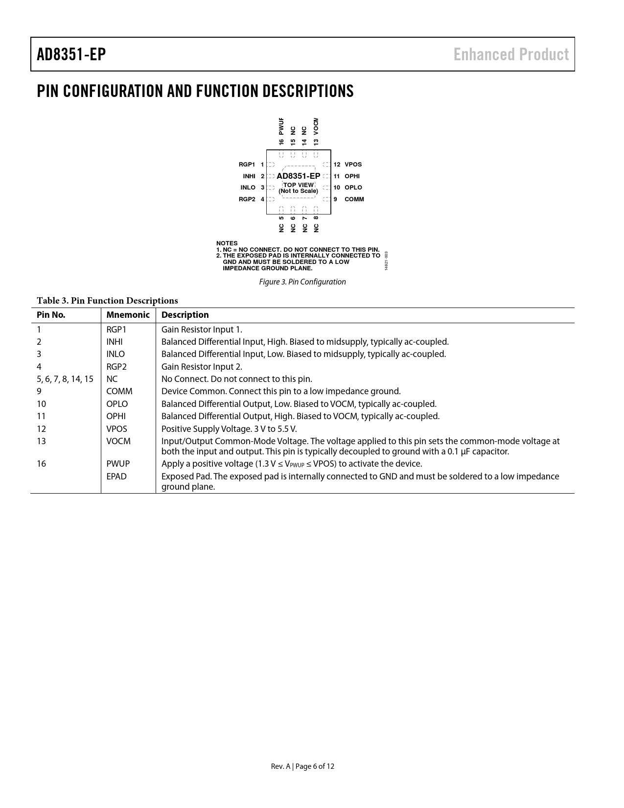 Pages / Page12 / 6 — AD8351-EP. Enhanced Product. PIN CONFIGURATION AND FUNCTION DESCRIPTIONS. …