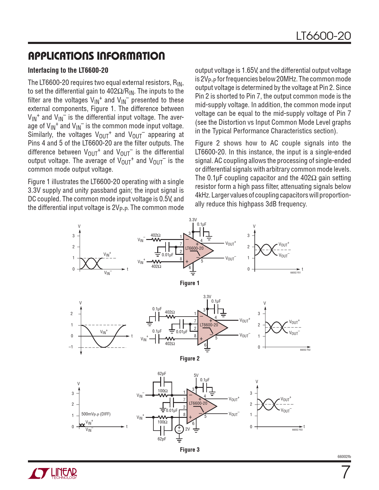 APPLICATIONS INFORMATION. Interfacing to the LT6600-20. Figure 1. Figure 2. Figure 3