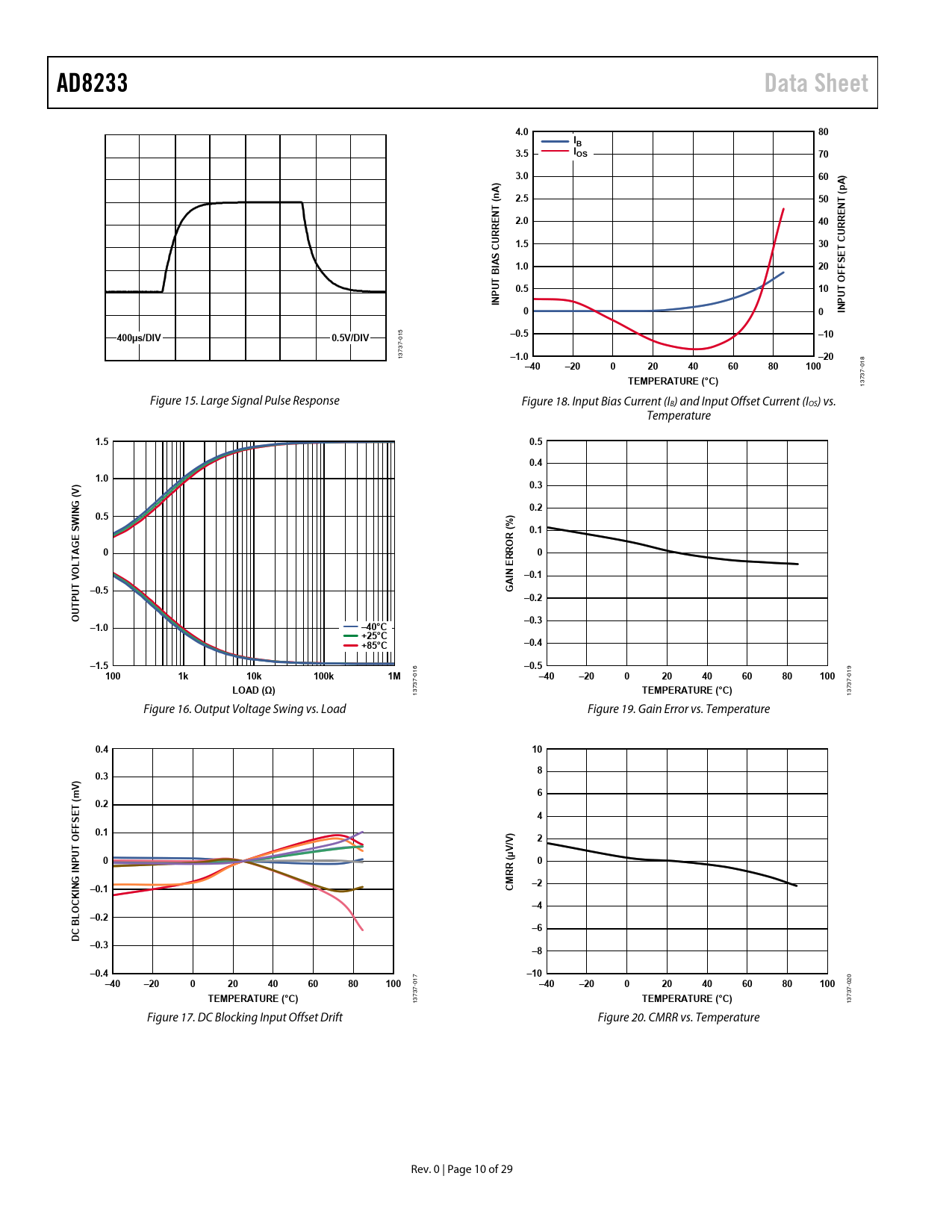 AD8233. Data Sheet. 4.0. 3.5. IOS. 3.0. 2.5. 2.0. URRE. 1.5. T E. IAS. 1.0. 0.5. INP. 400µs/DIV. 0.5V/DIV. –0.5. –10. –1.0. –20. –40. 100. TEMPERATURE (°C). 0.4. 0.3