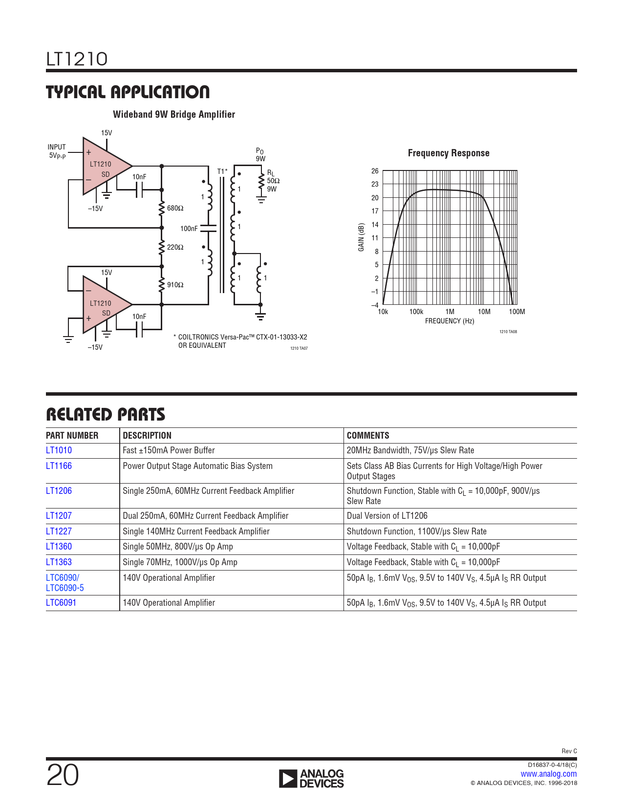 TYPICAL APPLICATION. Wideband 9W Bridge Amplifier. Frequency Response. RELATED PARTS PART NUMBER. DESCRIPTION. COMMENTS