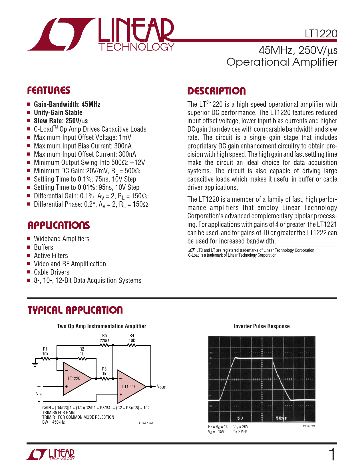 Datasheet LT1220 (Analog Devices)