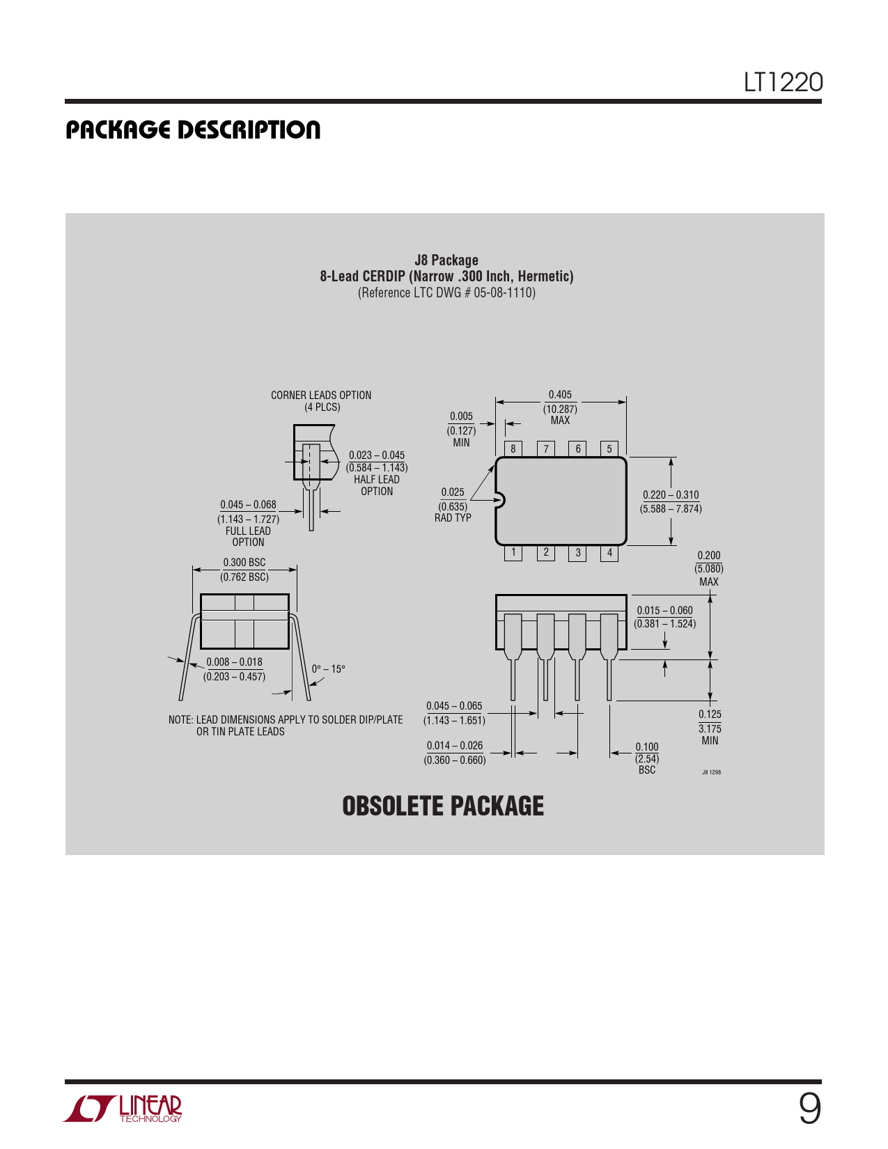 | Pages / Page | 12 / 9 — PACKAGE DESCRIPTIO. J8 Package. 8-Lead CERDIP (Narrow .300 Inch, … |