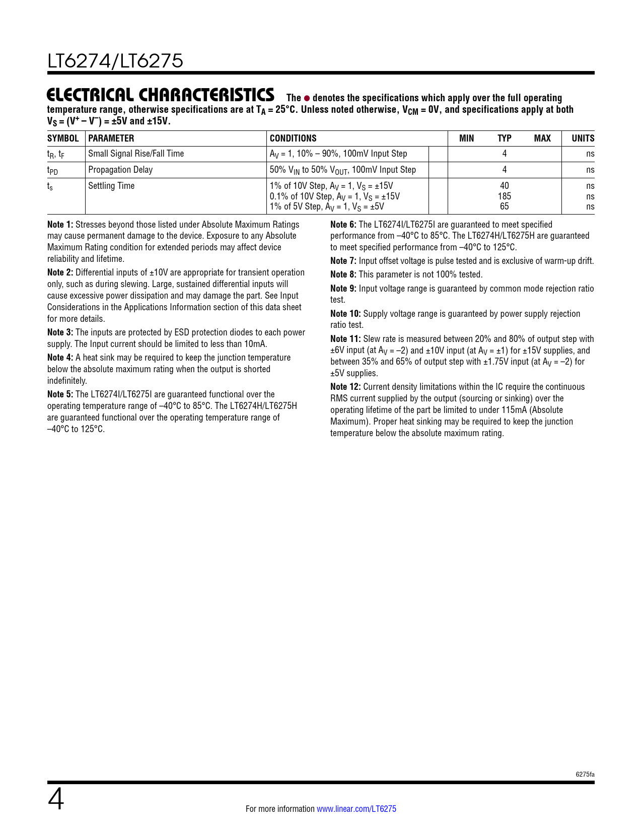 Datasheet LT6274, LT6275 (Analog Devices) - 4