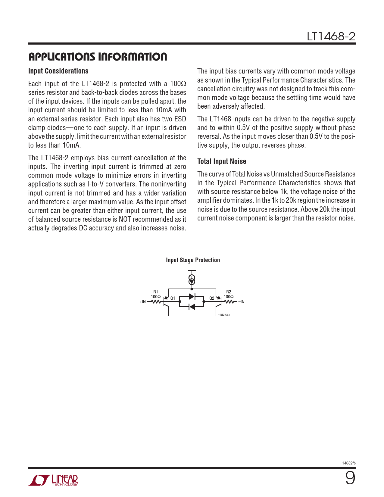 applicaTions inForMaTion Input Considerations. Total Input Noise. Input Stage Protection