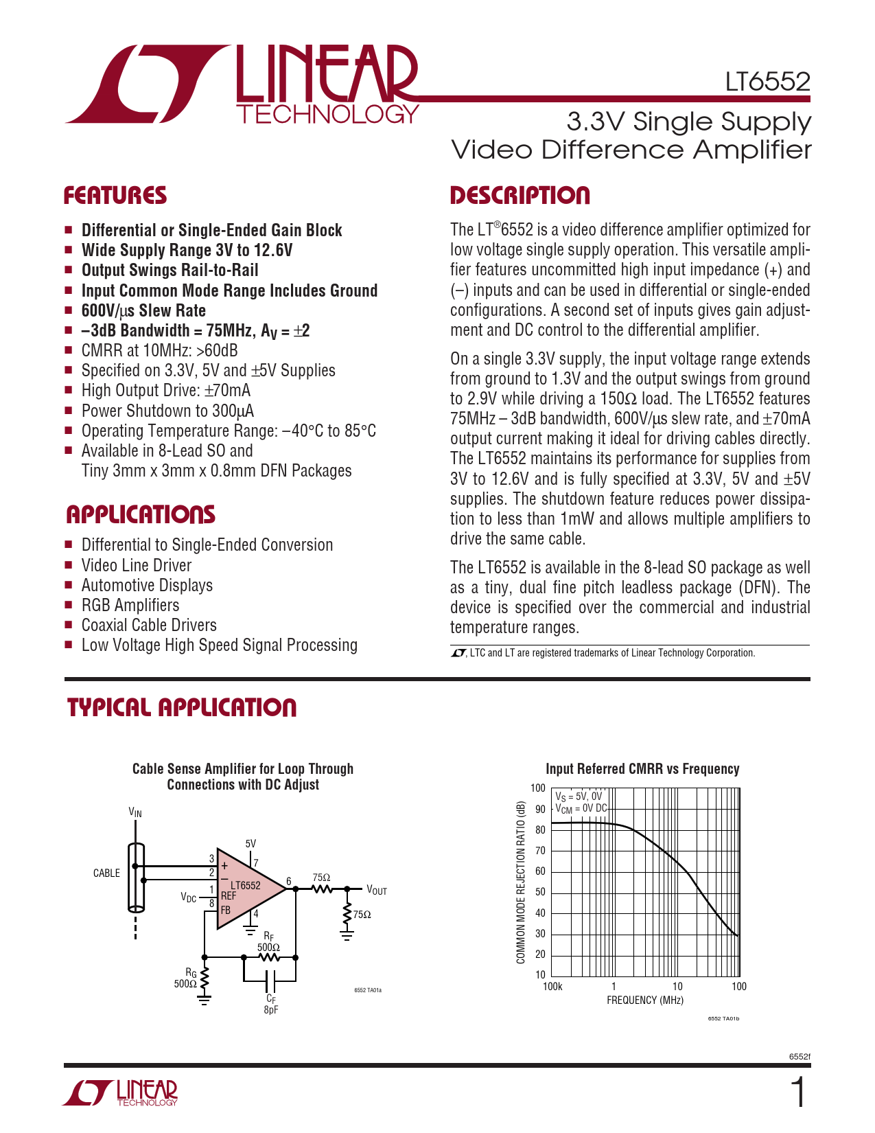 Datasheet LT6552 (Analog Devices)
