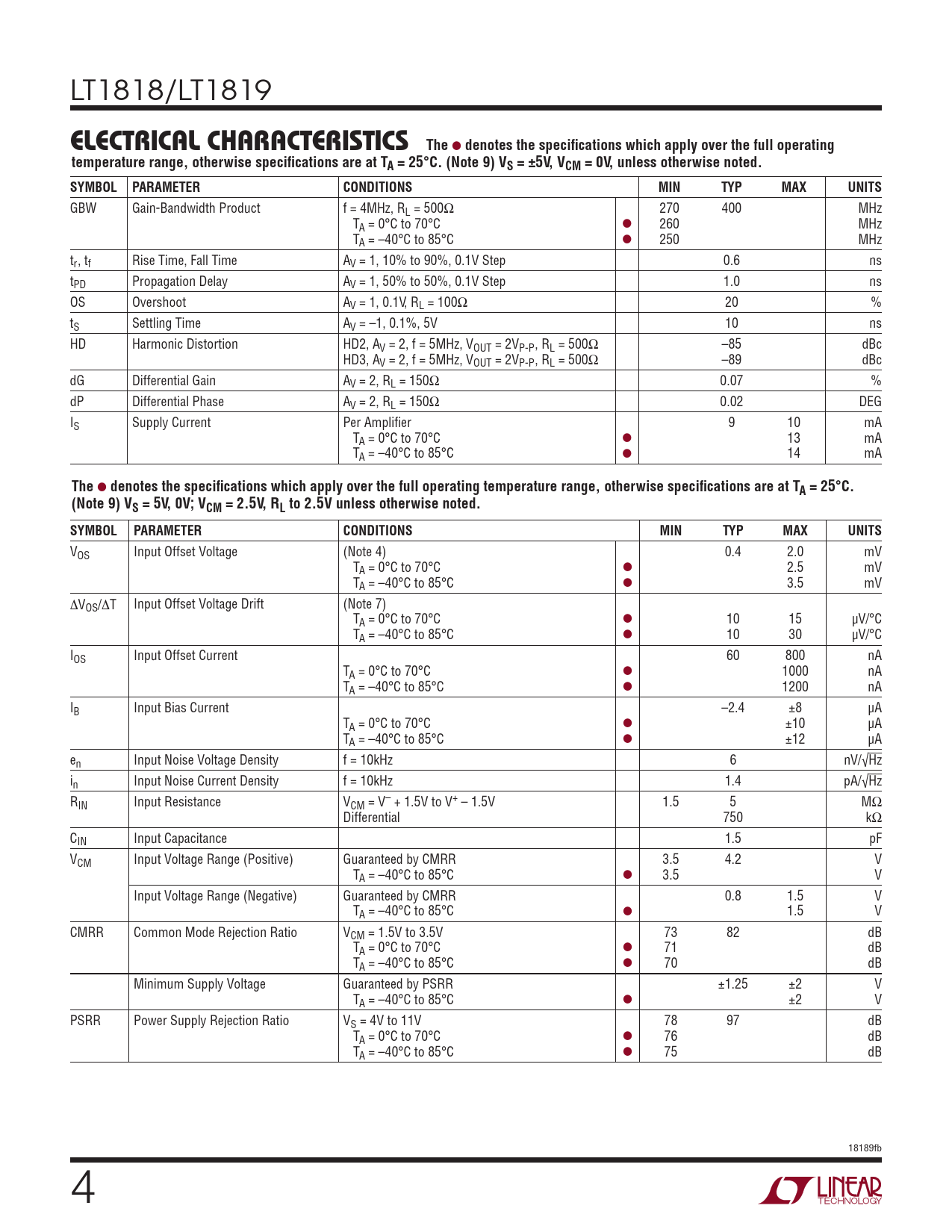 Datasheet LT1818, LT1819 (Analog Devices) - 4