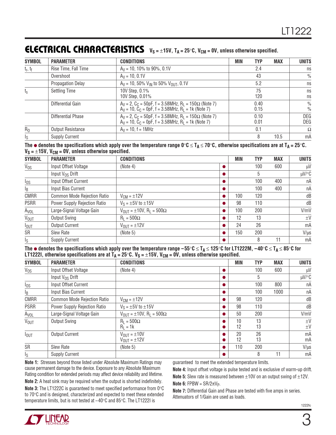 The LT1222C is guaranteed to meet specified performance from 0°C