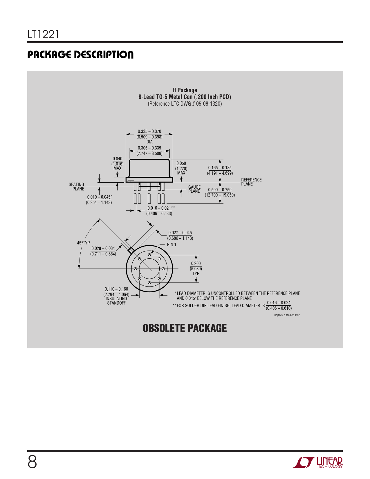 PACKAGE DESCRIPTIO. H Package. 8-Lead TO-5 Metal Can (.200 Inch PCD). OBSOLETE PACKAGE