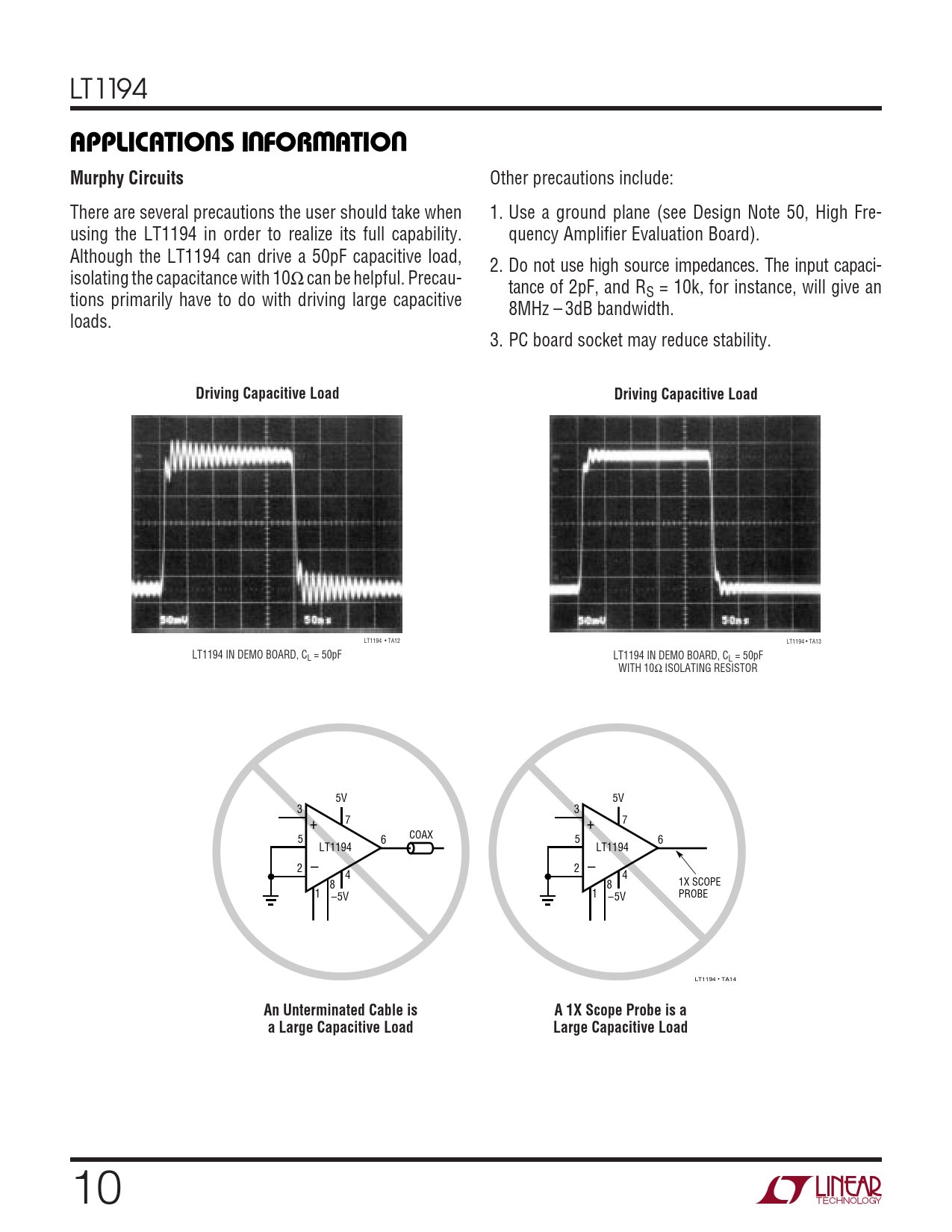 APPLICATIO S I FOR ATIO Murphy Circuits Driving Capacitive Load An Unterminated Cable is A 1X Scope Probe is a