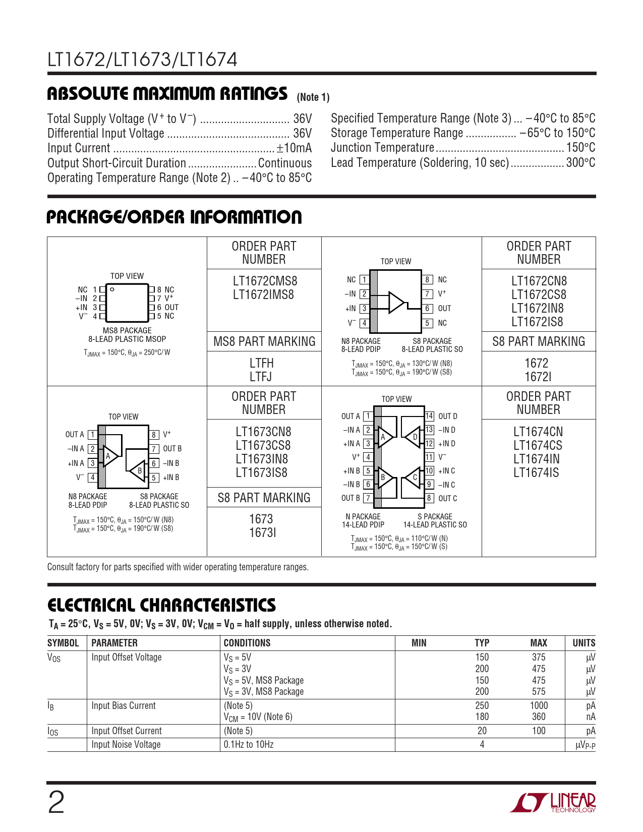 Datasheet LT1672, LT1673, LT1674 (Analog Devices) - 2