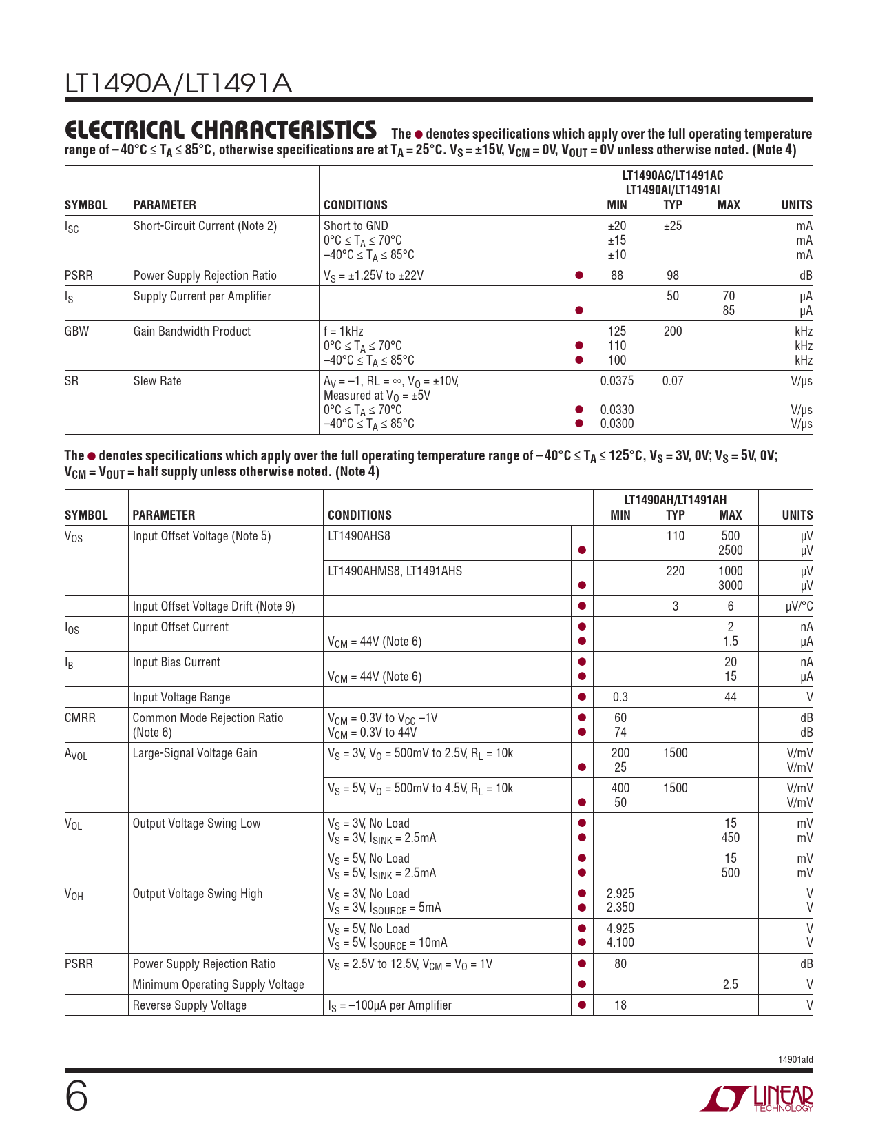 Datasheet LT1490A, LT1491A (Analog Devices) - 6