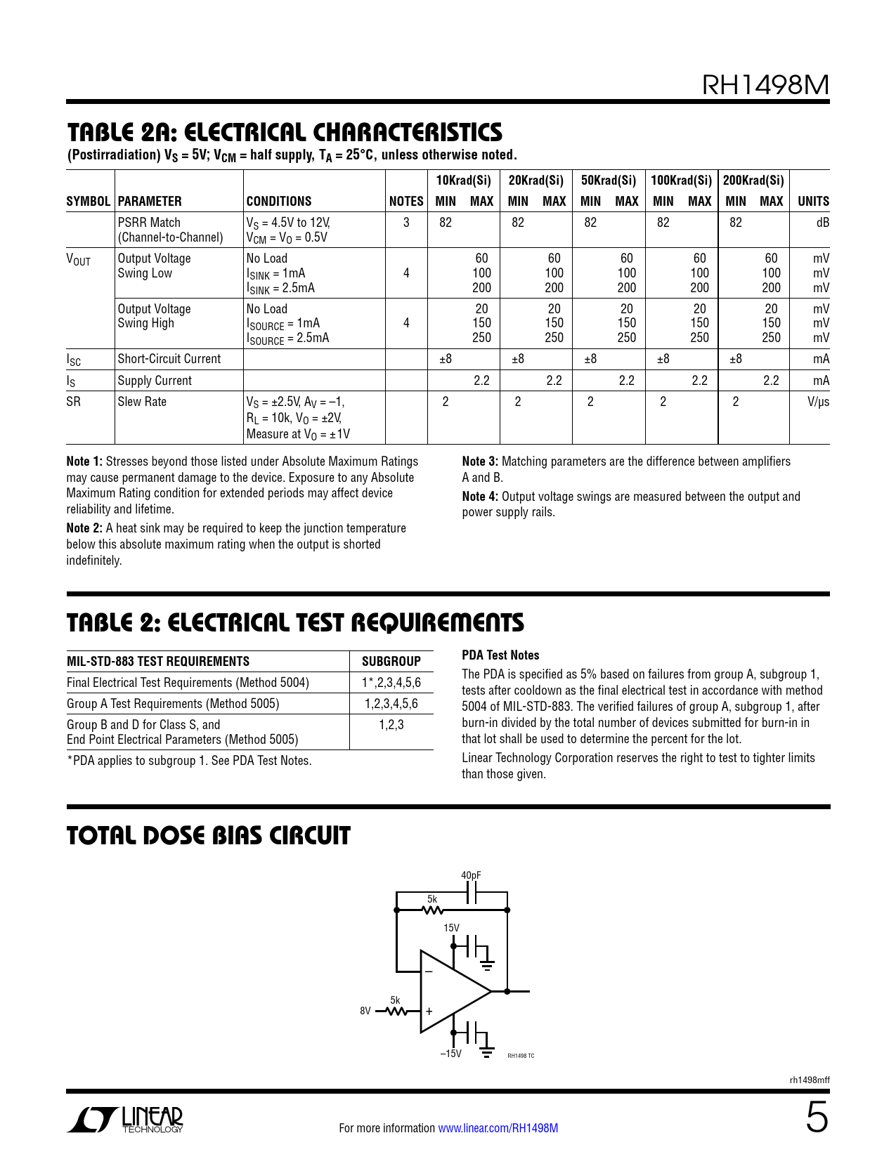 Pages / Page8 / 5 — TABLE 2A: ELECTRICAL CHARACTERISTICS. (Postirradiation) VS = 5V; VCM = …