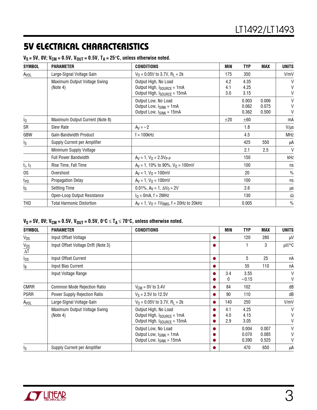 Datasheet LT1492, LT1493 (Analog Devices) - 3