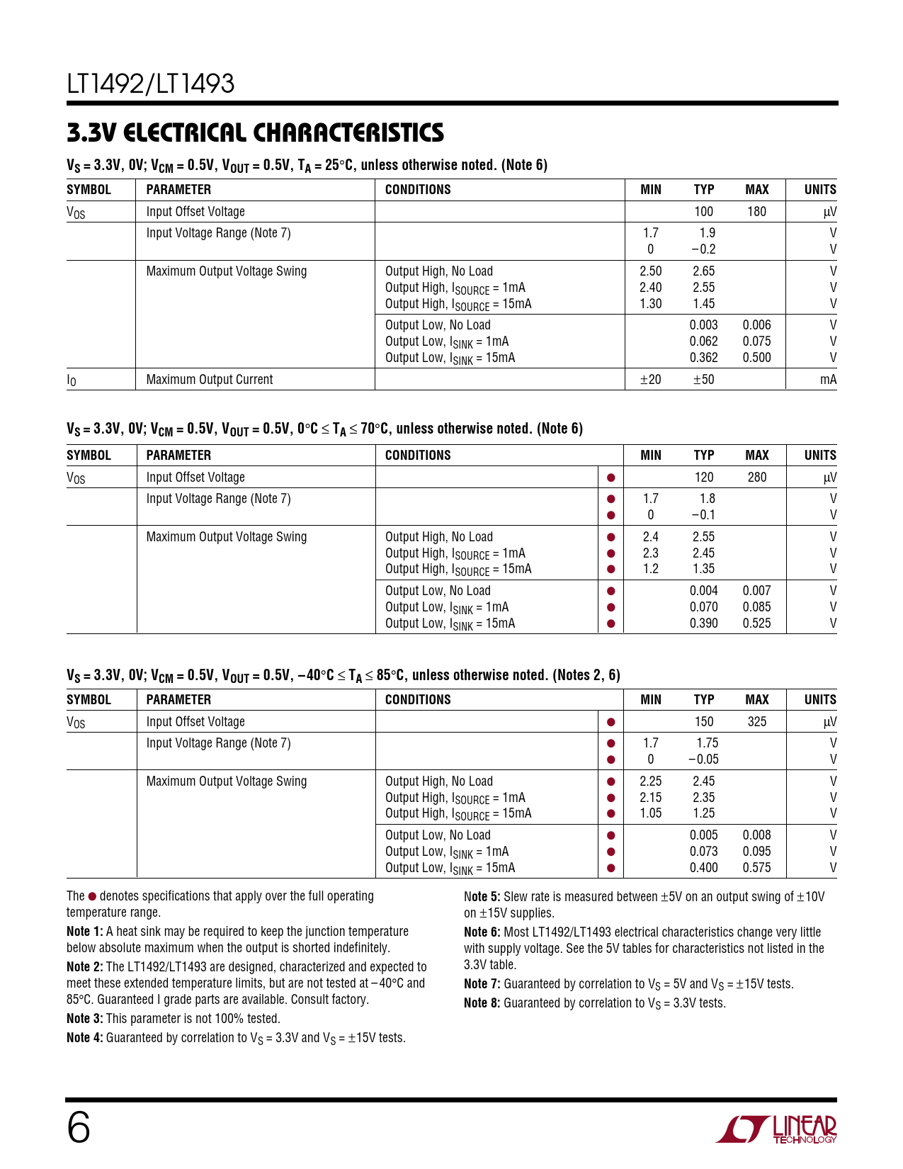 The LT1492/LT1493 are designed, characterized and expected to 3.3V table. meet these extended temperature limits, but are not tested at – 40°C and