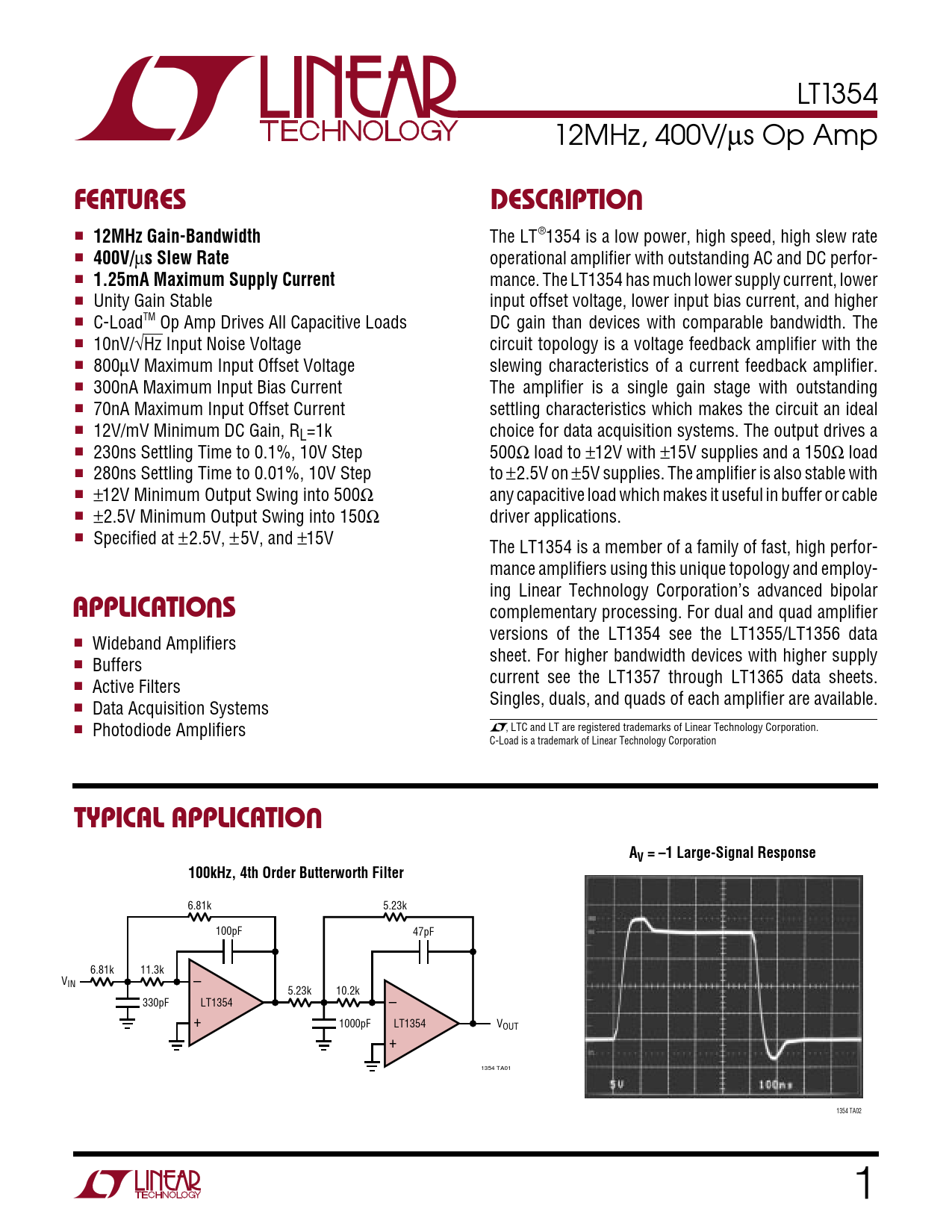 Datasheet LT1354 (Analog Devices)