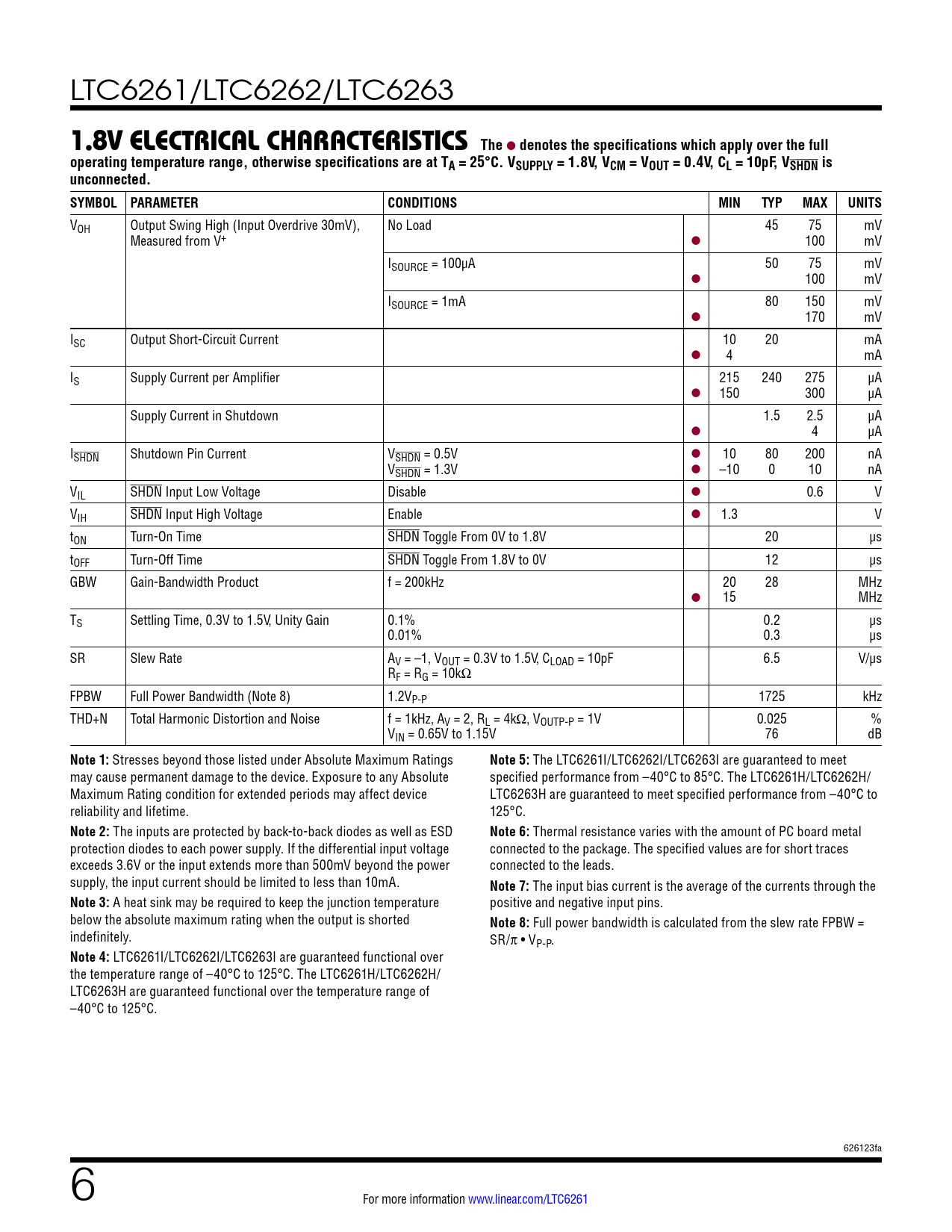 Datasheet LTC6261, LTC6262, LTC6263 (Analog Devices) - 6