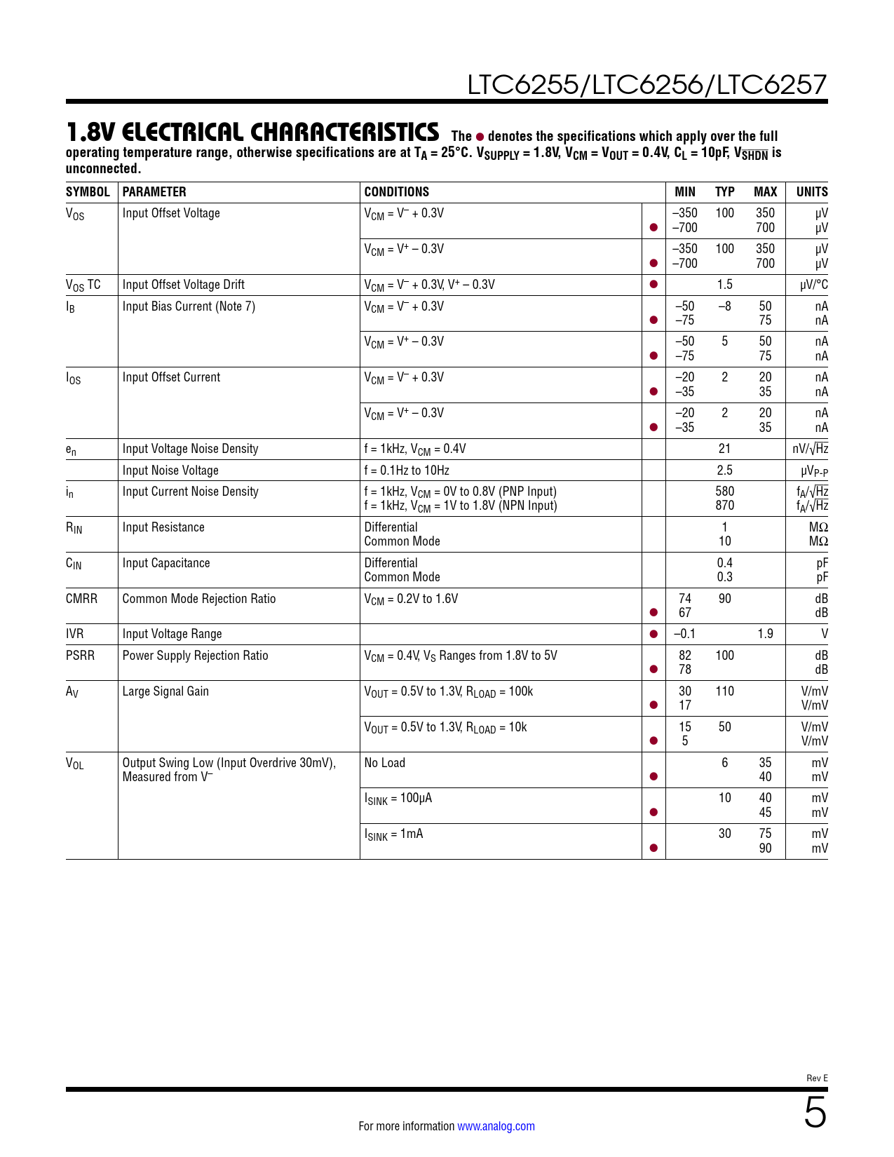 Datasheet LTC6255, LTC6256, LTC6257 (Analog Devices) - 5