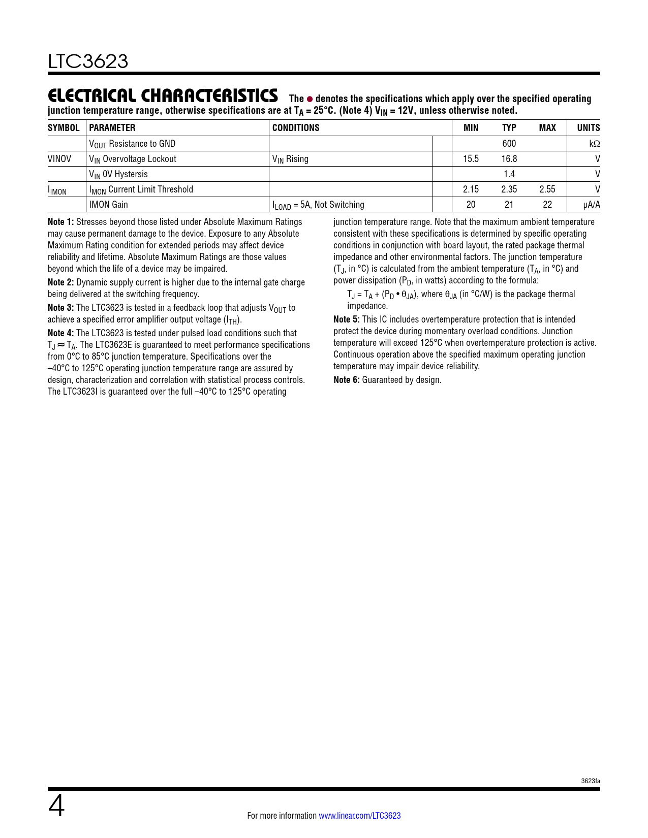 Guaranteed by design. The LTC3623I is guaranteed over the full –40°C to 125°C operating 3623fa 4 For more information www.linear.com/LTC3623