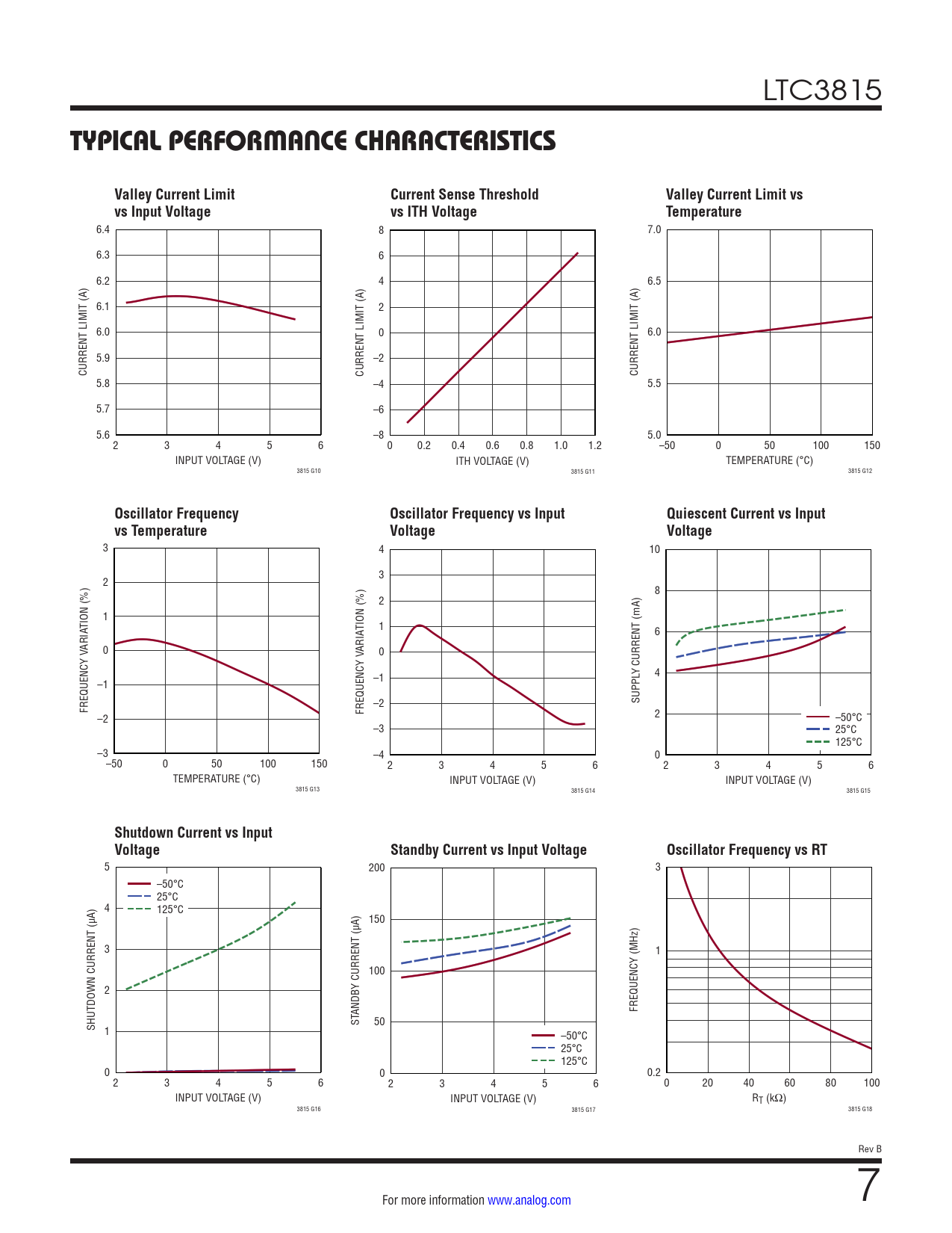 6.4 8 7.0 6.3 6 6.2 4 6.5 6.1 2 6.0 0 6.0 5.9 –2 CURRENT LIMIT (A) CURRENT LIMIT (A) CURRENT LIMIT (A) 5.8 –4 5.5 5.7 –6 5.6 –8 5.0 2 3 4 5 6 0 0.2 0.4 0.6 0.8 1.0 1.2 –50 0 50 100 150 INPUT VOLTAGE (V) ITH VOLTAGE (V) TEMPERATURE (°C) 3815 G10 3815 G11 3815 G12