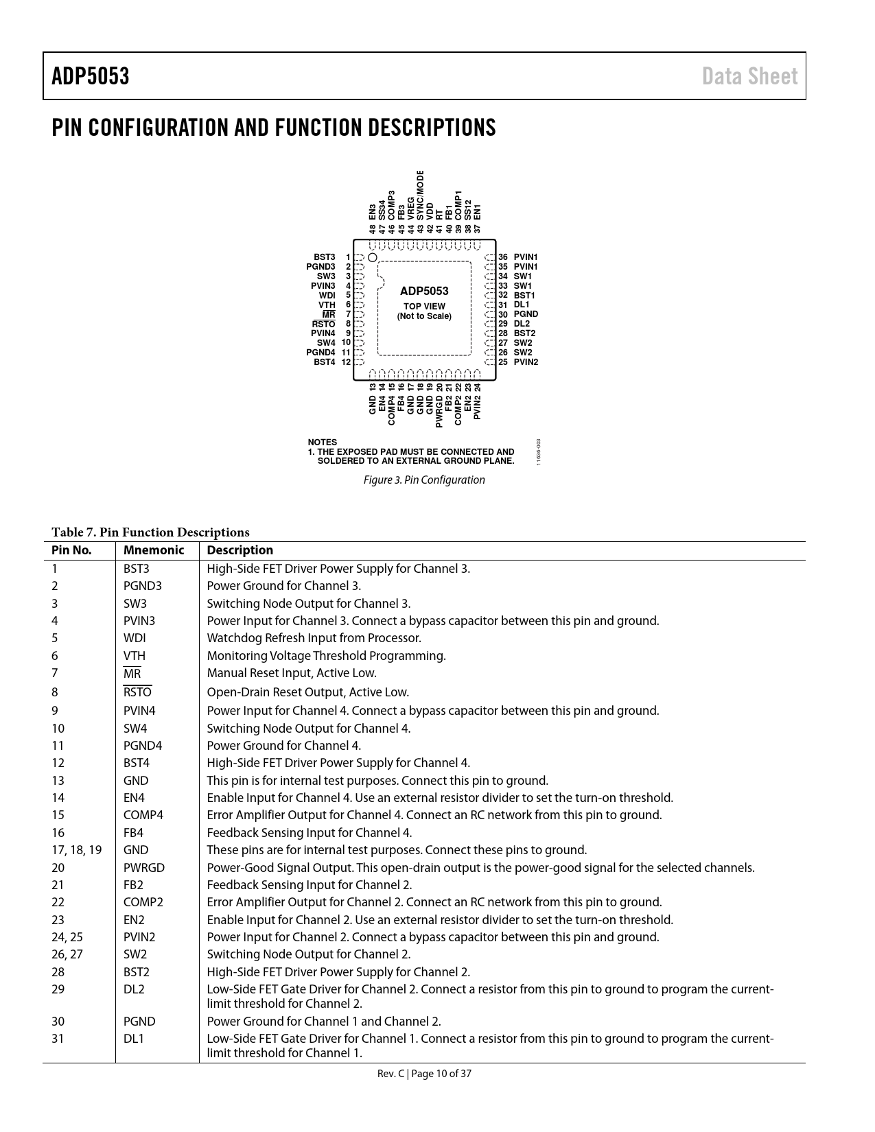 Pages / Page37 / 10 — ADP5053. Data Sheet. PIN CONFIGURATION AND FUNCTION DESCRIPTIONS. DE O M. …